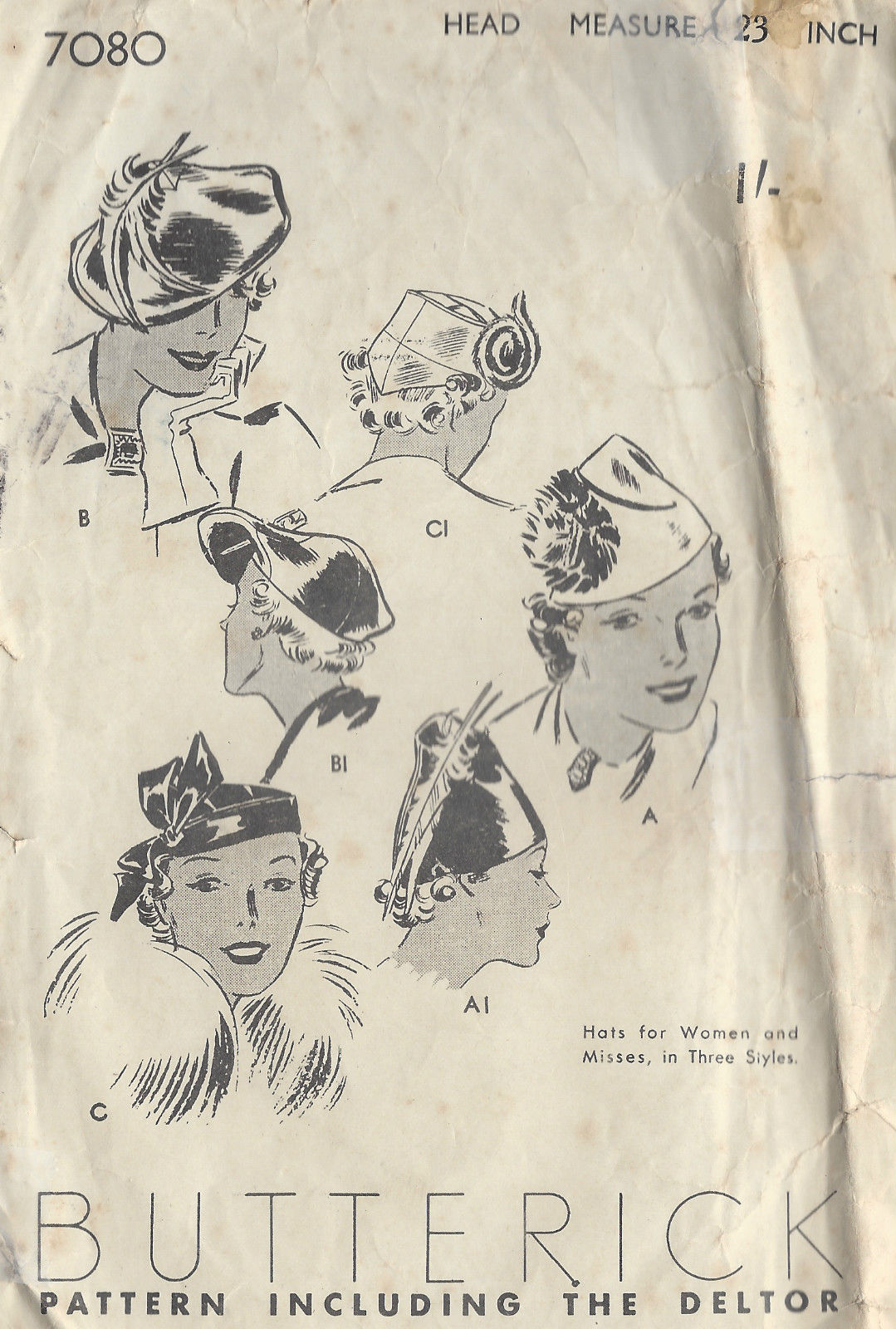 1930s Vintage Sewing Pattern HATS SIZE: 23″ (1279)
