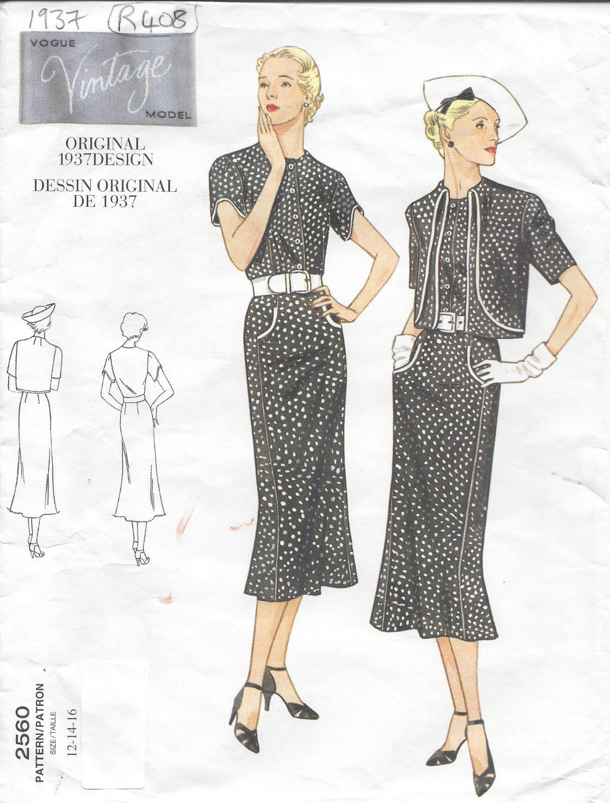 1937 Vintage Sewing Pattern DRESS-BOLERO Bust: 34″-36″-38″ (R408)