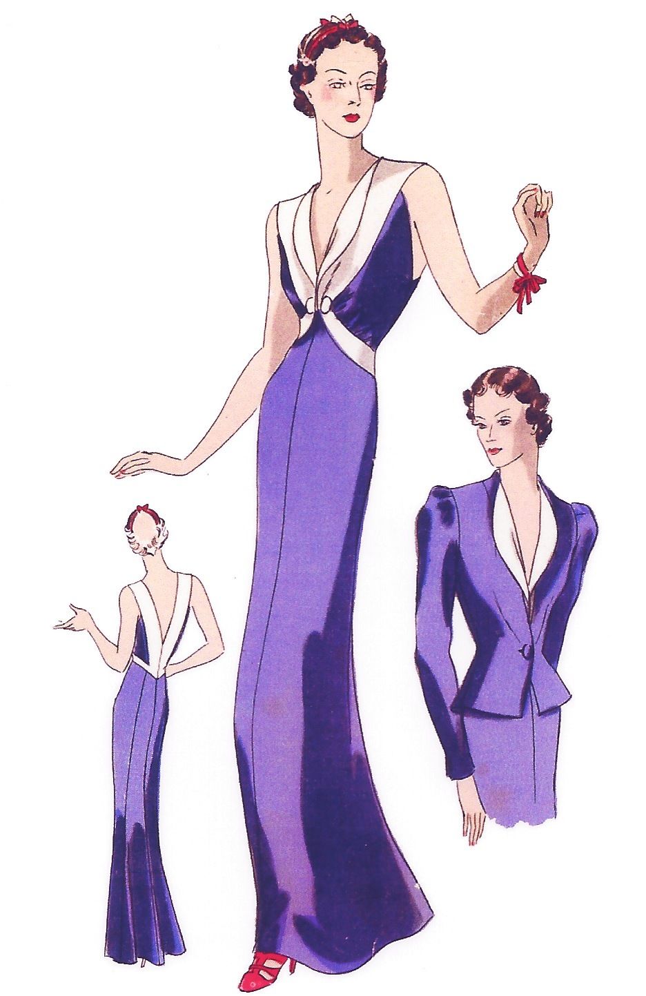 1939 VOGUE Vintage Sewing Pattern B34″ EVENING DRESS & JACKET (1026)