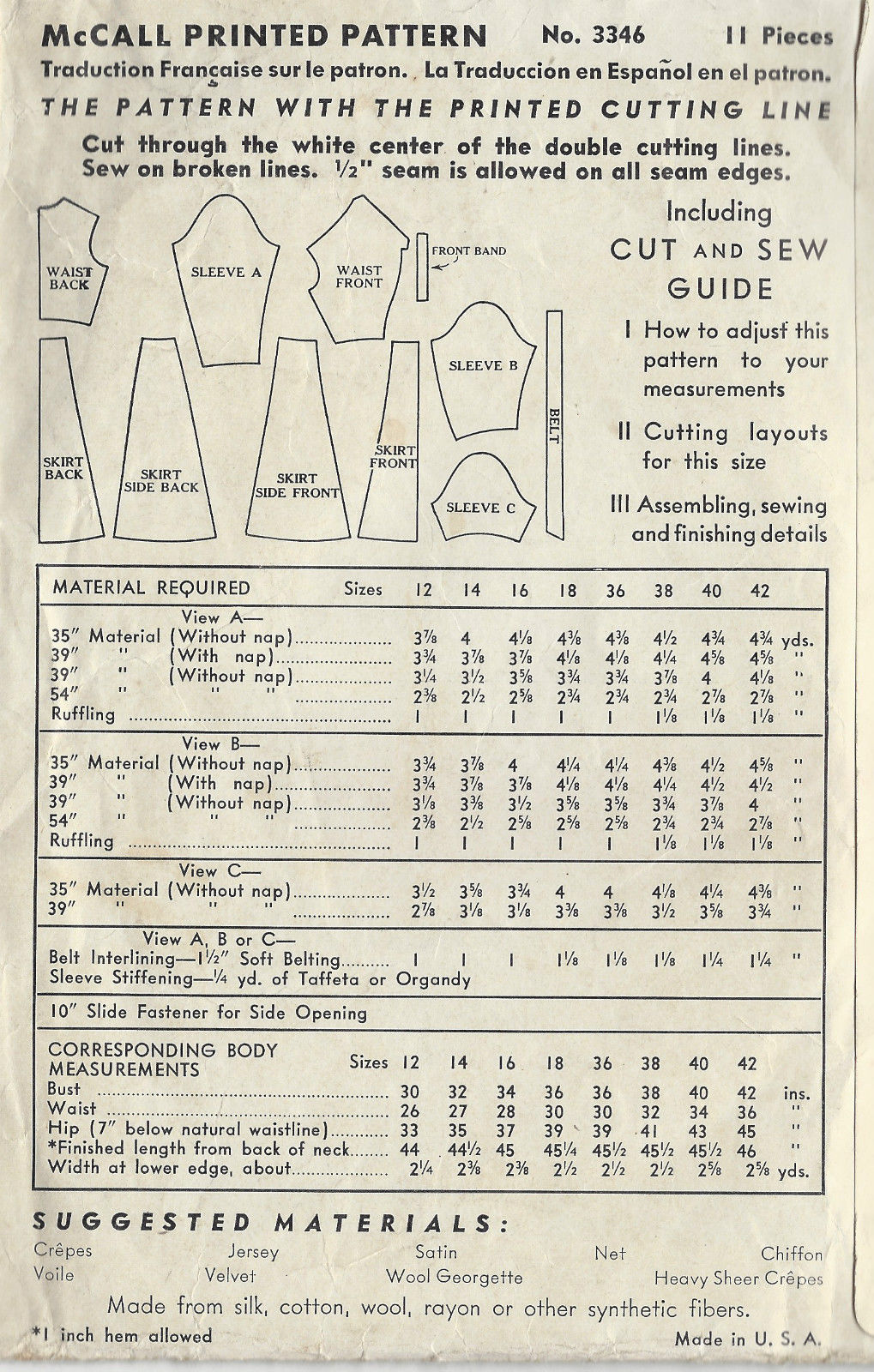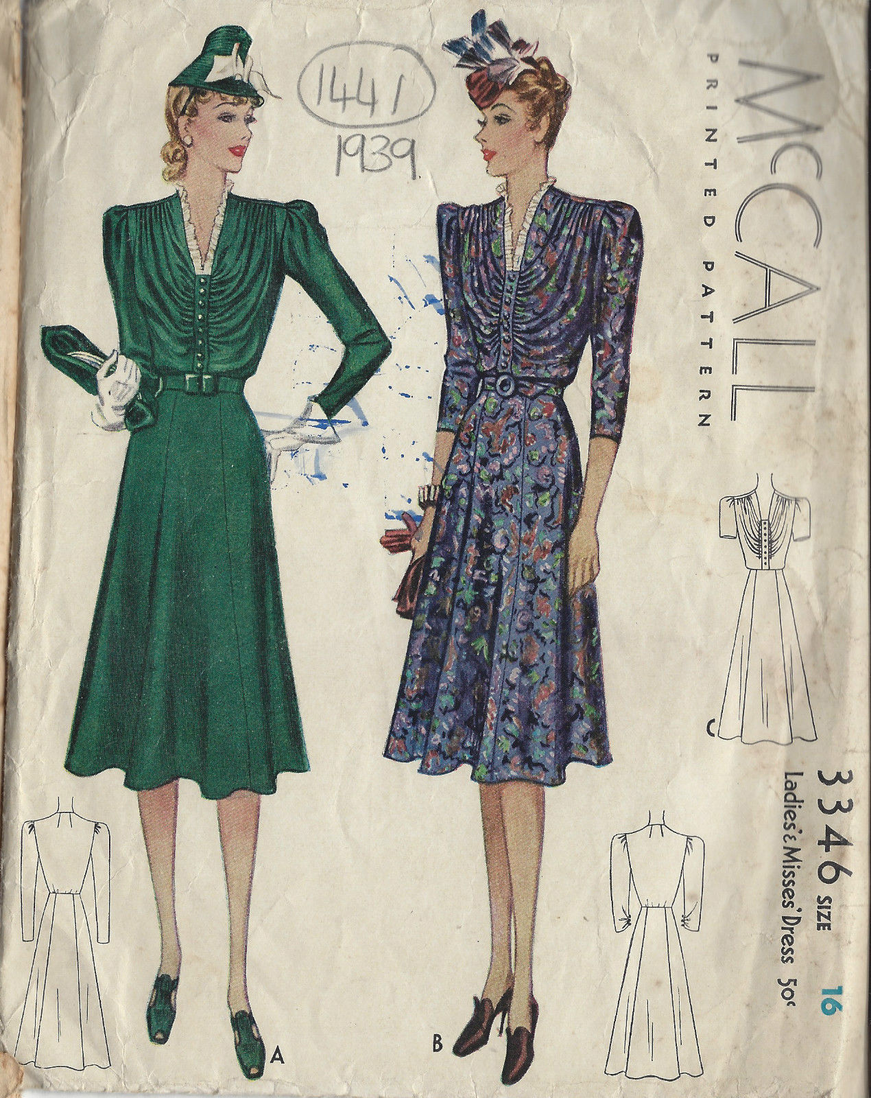 1939 WW2 Vintage Sewing Pattern B34in DRESS (1441)