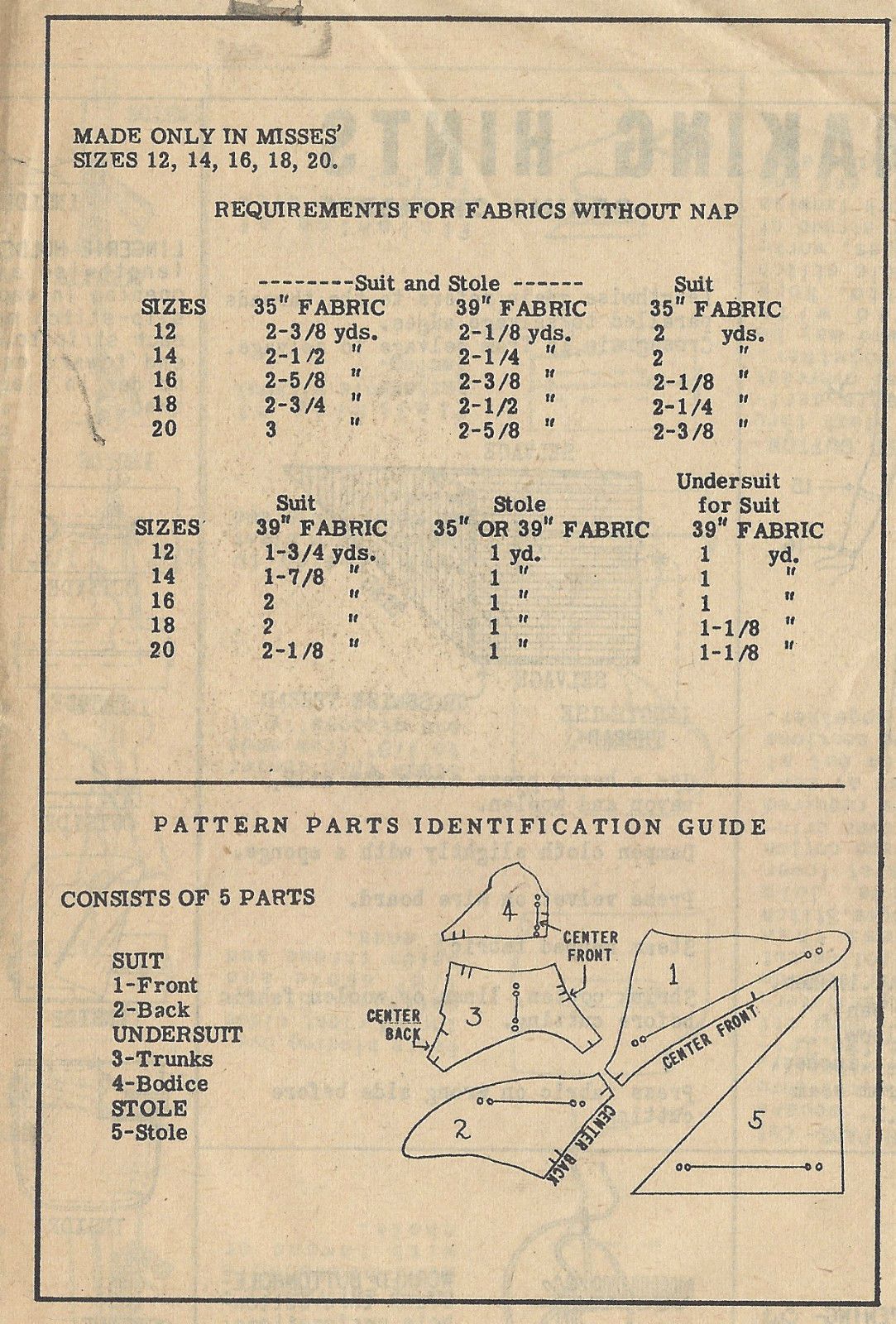 1940s Vintage Sewing Pattern B38″ BATHING SUIT & STOLE (1354)