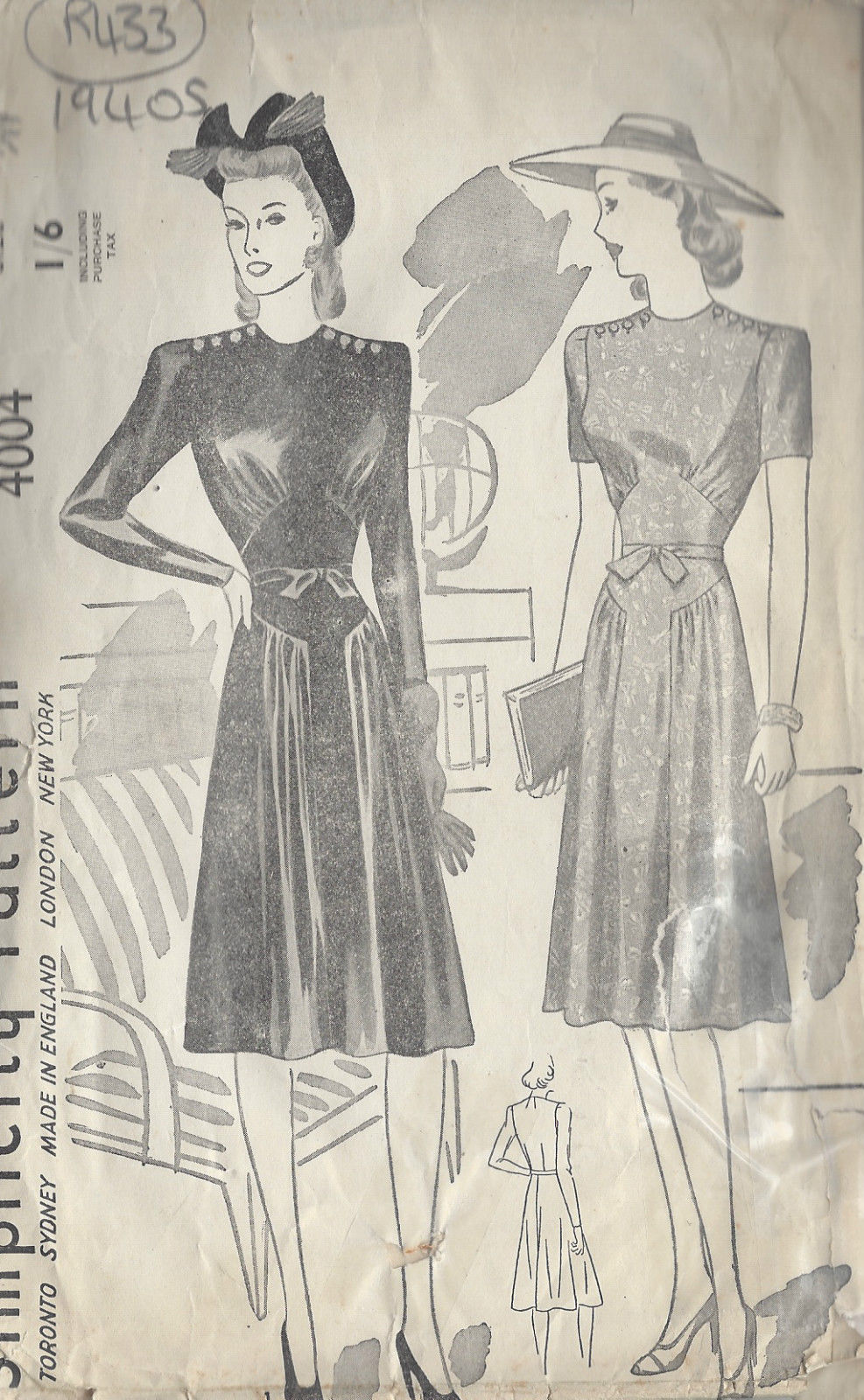 1940s Vintage Sewing Pattern B38″ DRESS (R433)