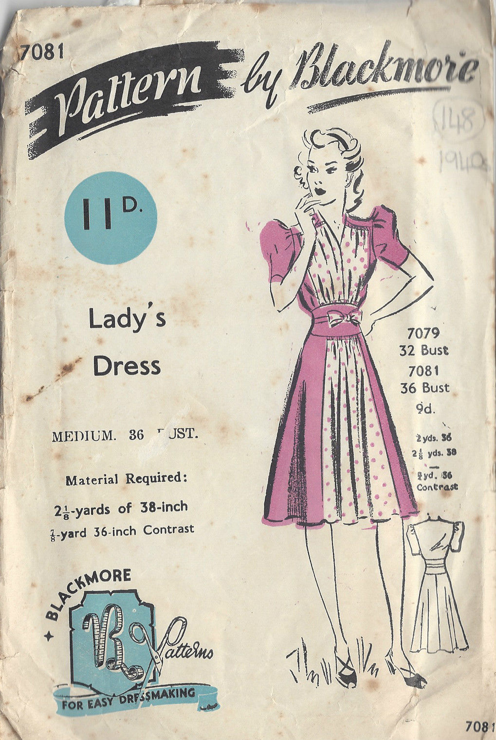 1940s WW2 Vintage Sewing Pattern DRESS B36in (148) By Blackmore 7081