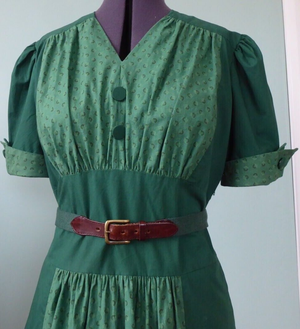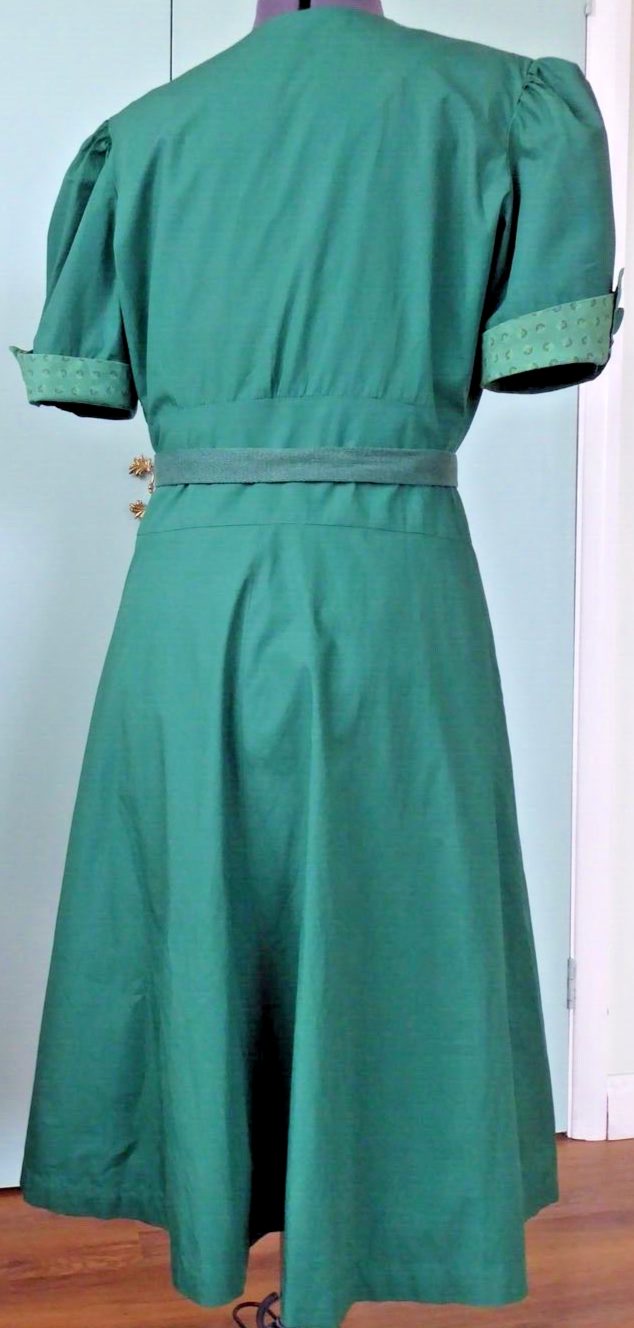 (One of my buyers who is a SUPERB sewer and creator of Vintage Garments made this dress from this pattern. Cost of materials: 3 meters plain cotton poplin £15.84, 1 meter patterned cotton fabric £9.99 plus a zip and some self cover button forms approximately £5. ” did not find the pattern complicated or difficult, and I am very happy with the final result”).