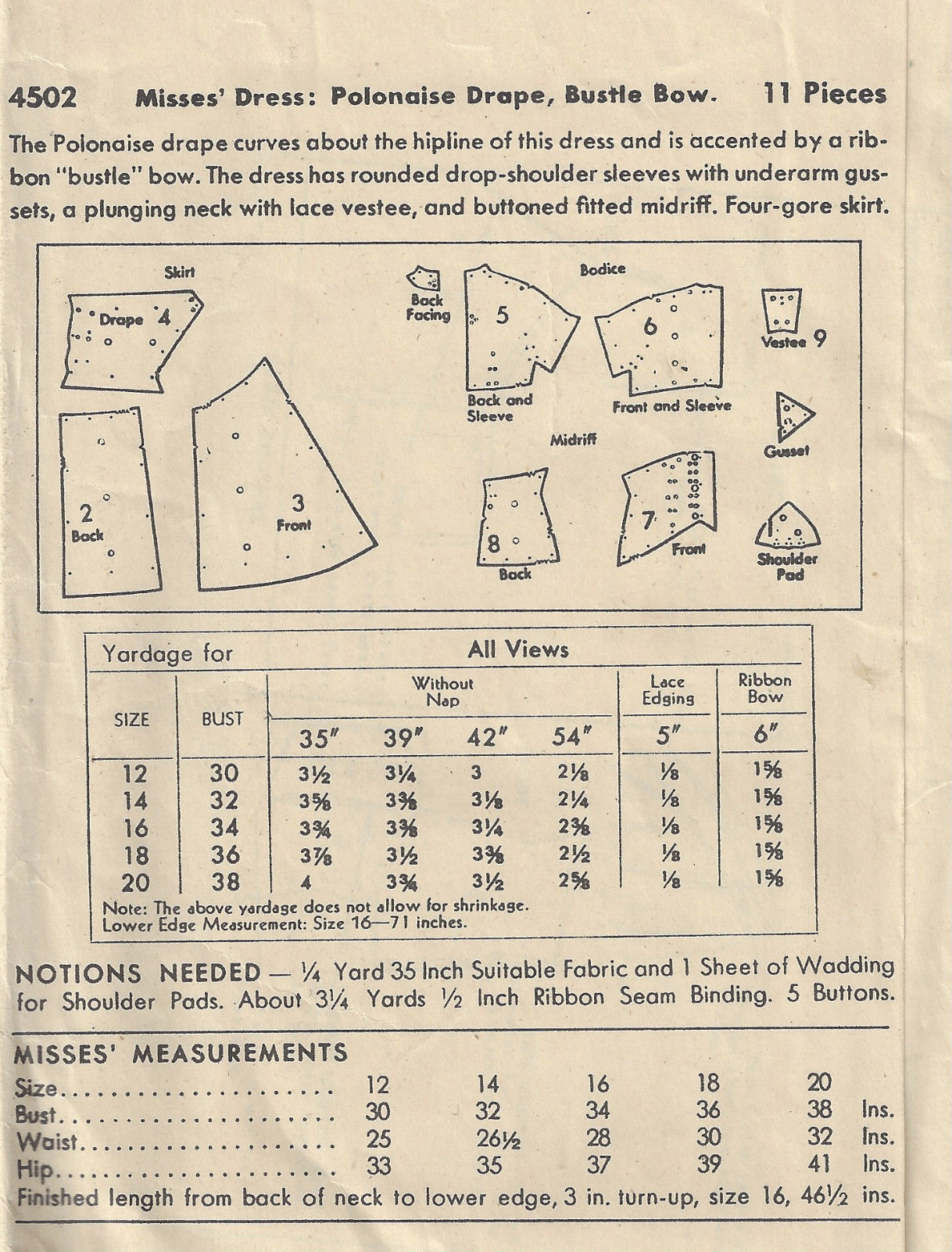 ~ Please Note: ~ You are buying a ‘Professional Digitally Reproduced’ copy of this sewing pattern. Copied from the original sewing pattern. Produced in Full Scale Pattern Pieces ready to cut with full instructions included. Reproduced on high quality 50 gm paper with black ink, durable and easier for reuse.