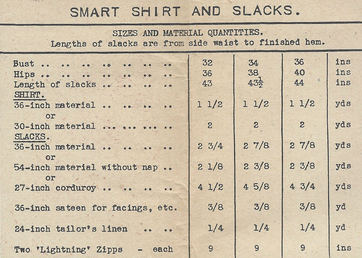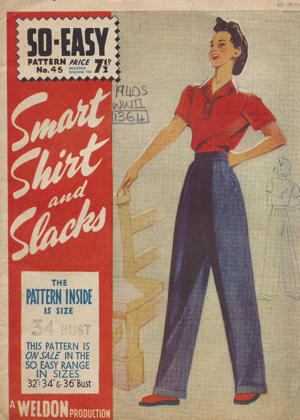 ~ Details: Typically styled 1940s Ladies PANTS – TROUSERS – SLACKS and SHIRT (Rare Pattern!)
