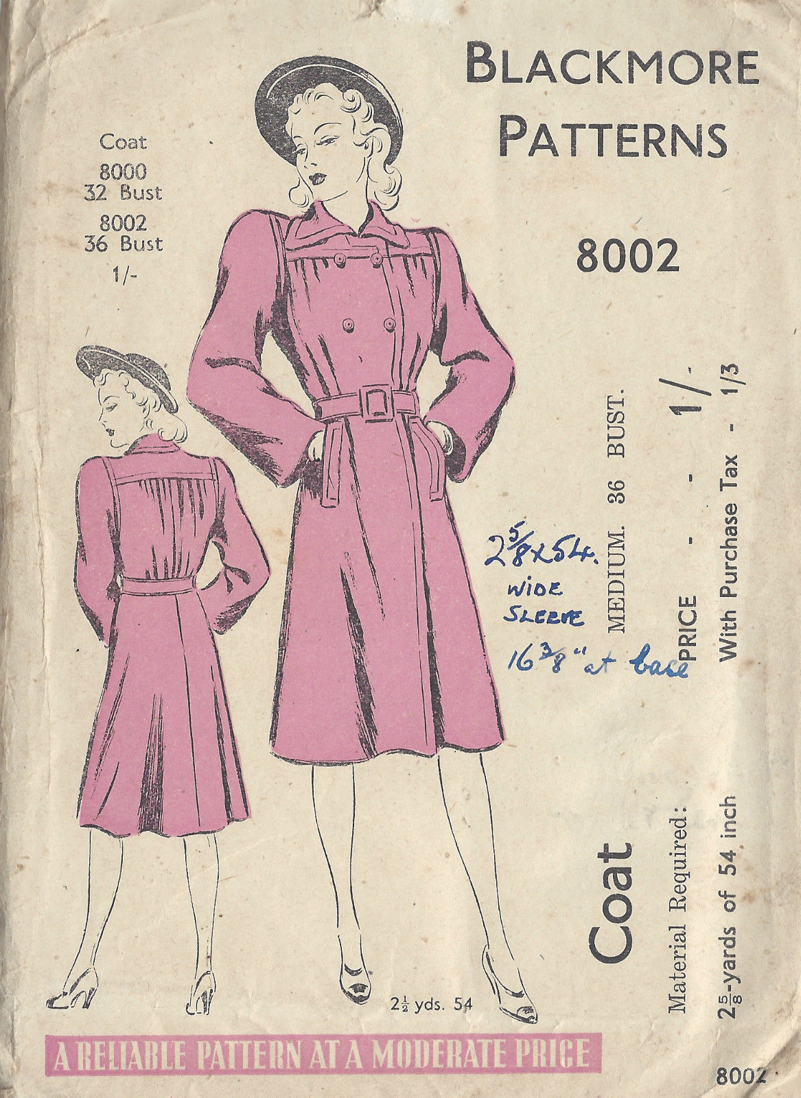 1940s WW2 Vintage Sewing Pattern B36″ COAT (1082)