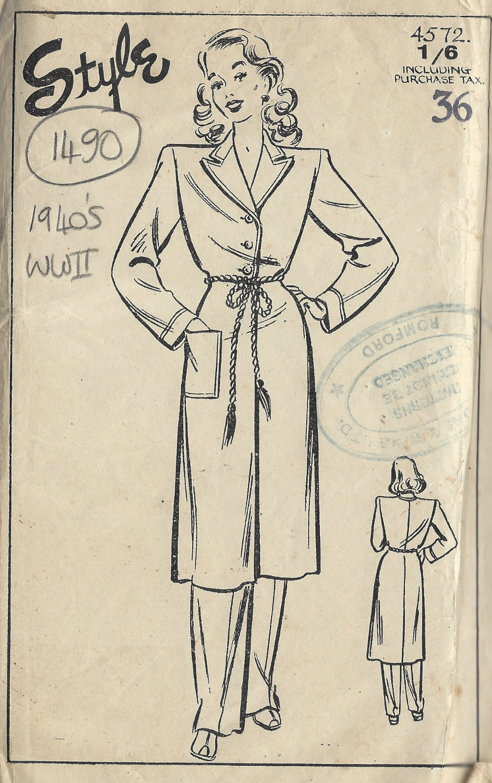 1940s WW2 Vintage Sewing Pattern B36″ HOUSE COAT DRESSING GOWN (1490)