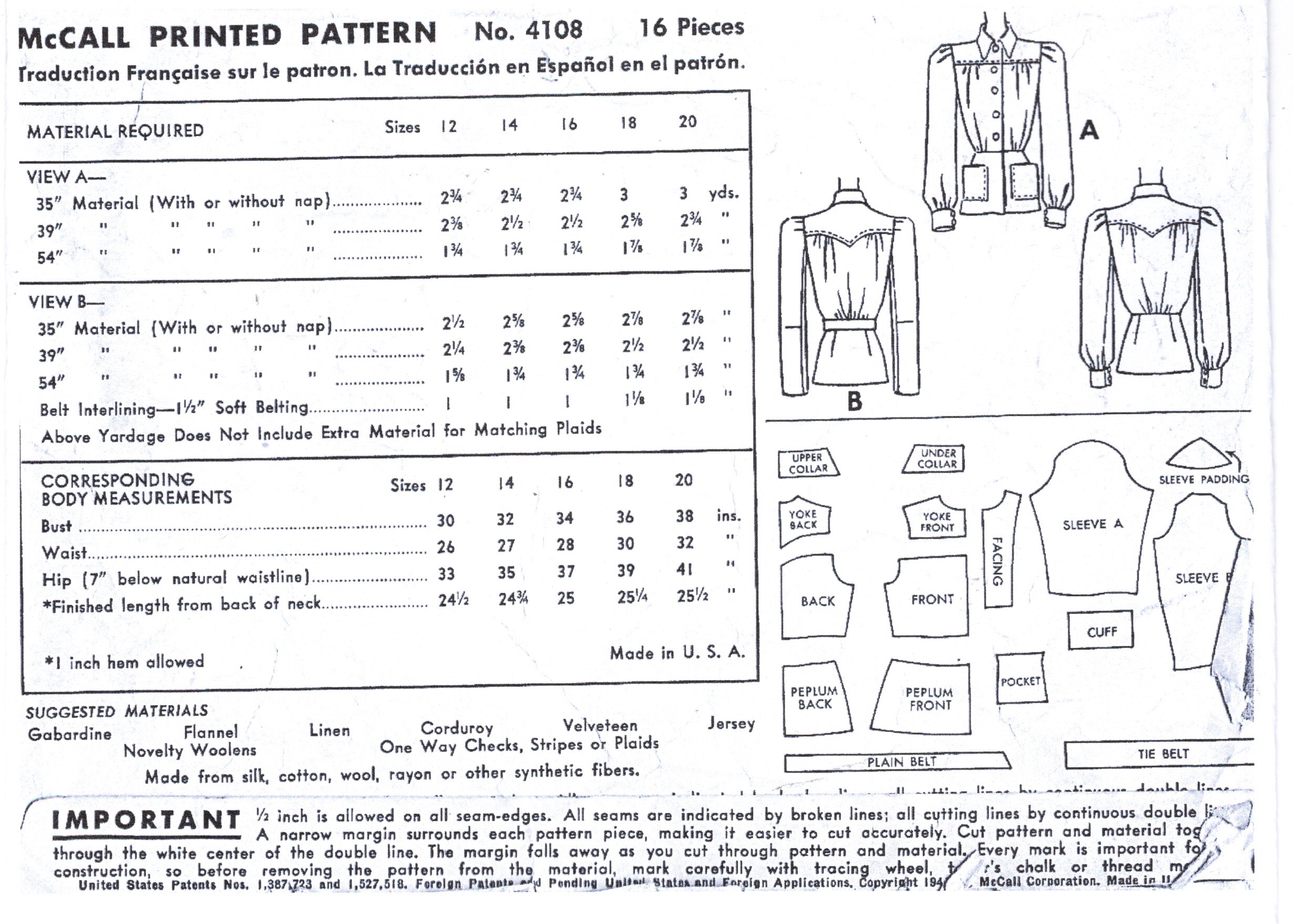 ~ Please Note: ~ You are buying a ‘Professional Digitally Reproduced’ copy of this sewing pattern. Copied from the original sewing pattern. Produced in Full Scale Pattern Pieces ready to cut with full instructions included. Reproduced on high quality 50 gm paper with black ink, durable and easier for reuse.