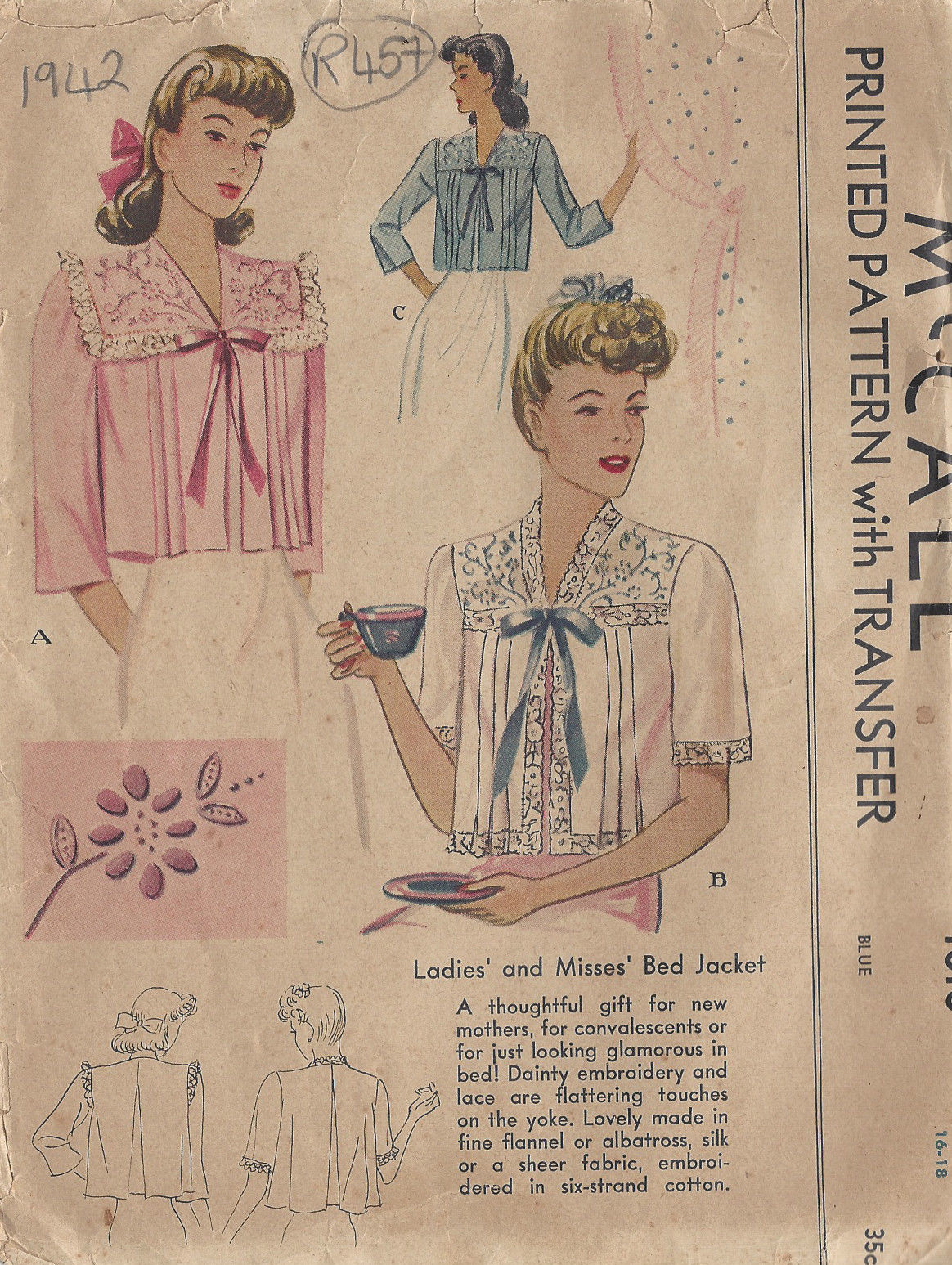 ~ Details: Two style variation BEDJACKET with Embroidery Transfer (transfer is not iron on)