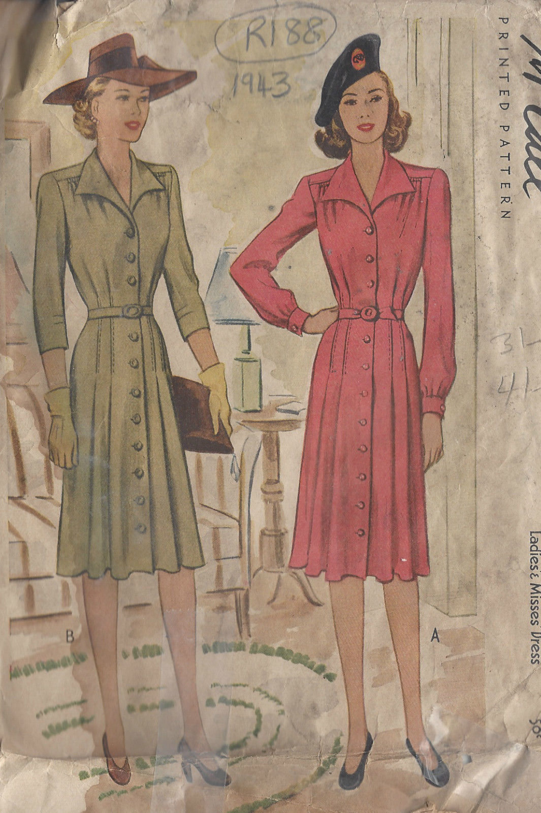 1943 Vintage Sewing Pattern B30″ DRESS (R188)
