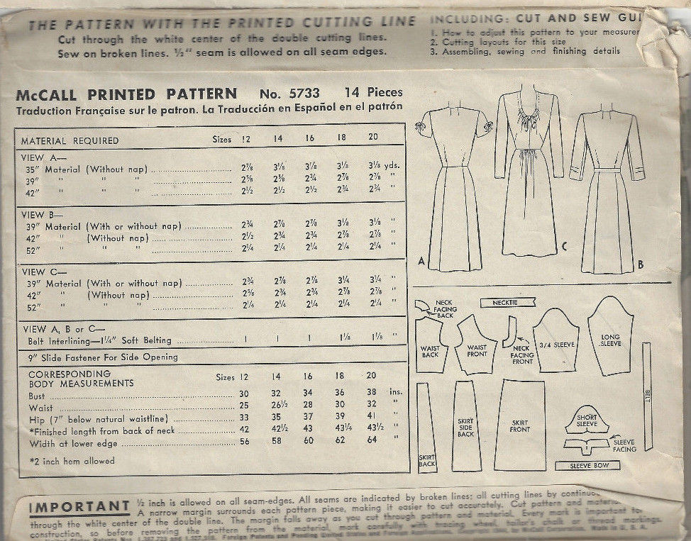 ~ Please Note: ~ You are buying a ‘Professional Digitally Reproduced’ copy of this sewing pattern. Copied from the original sewing pattern. Produced in Full Scale Pattern Pieces ready to cut with full instructions included. Reproduced on high quality 50 gm paper with black ink, durable and easier for reuse.