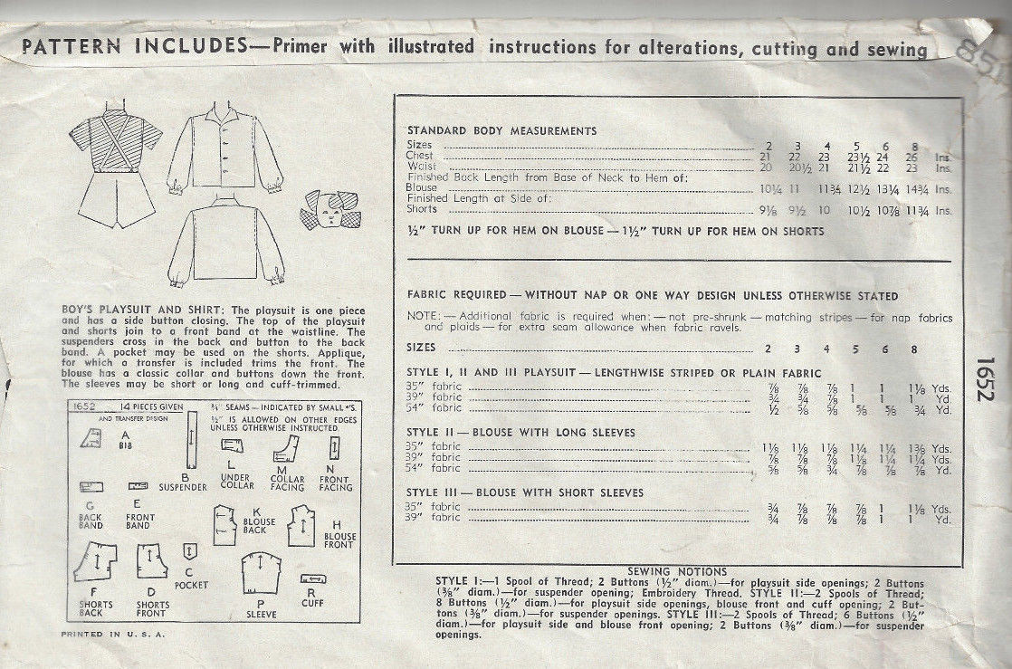 ~ Details: VARIATION STYLE BOY’S PLAYSUIT and SHIRT (Rare WW2 pattern!)