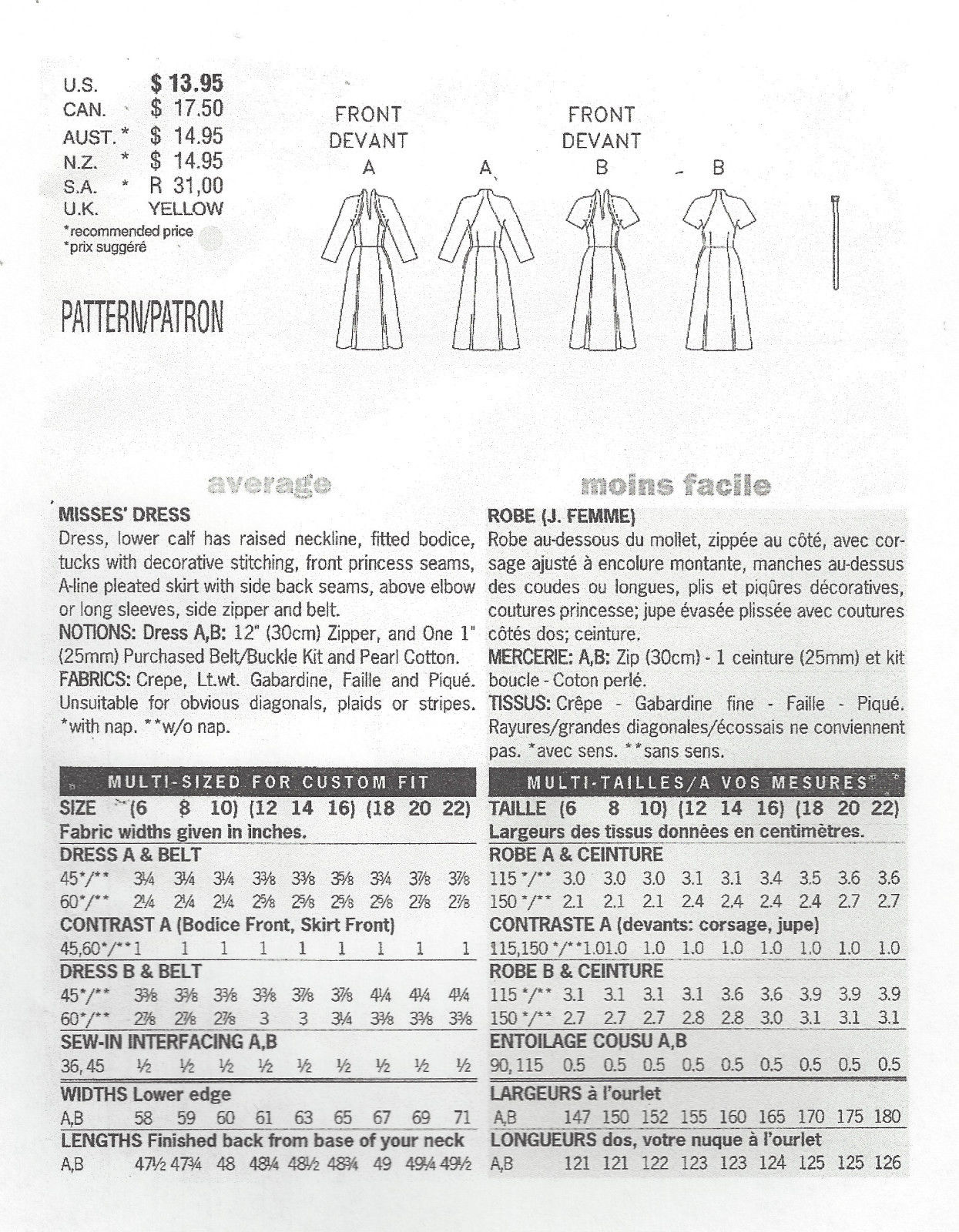 ~ Please Note: You are buying a ‘Professional Digitally Reproduced’ copy of this Sewing Pattern, from the now discontinued, ‘Reproduced Butterick Retro Vintage’ range, (copied from the original sewing pattern), produced in ‘Full Scale Pattern Pieces’ ready to cut with full instructions included. I have a vast collection of ‘Original Vintage Sewing Patterns’ ranging from the 1930s-to-1980s which are precious to me, so I decided to have copies professionally made to a very high standard by a reputable printing company. Therefore part of my collection of sewing patterns are reproduced to this quality high standard, on 50 gram paper with black ink. This will ensure a much longer lasting effect and easier to be used again and again. Also included with this product is: a plastic bound ‘Booklet’ giving instructions and Illustrations on ‘How to Adjust Your pattern to your Personal Measurement’, ‘Personal Measurement Chart’, ‘Body Form Illustrations’, ‘Note Pages’, ‘Garment History Page’ and ‘Fabric Worksheet’; all to facilitate with your pattern.