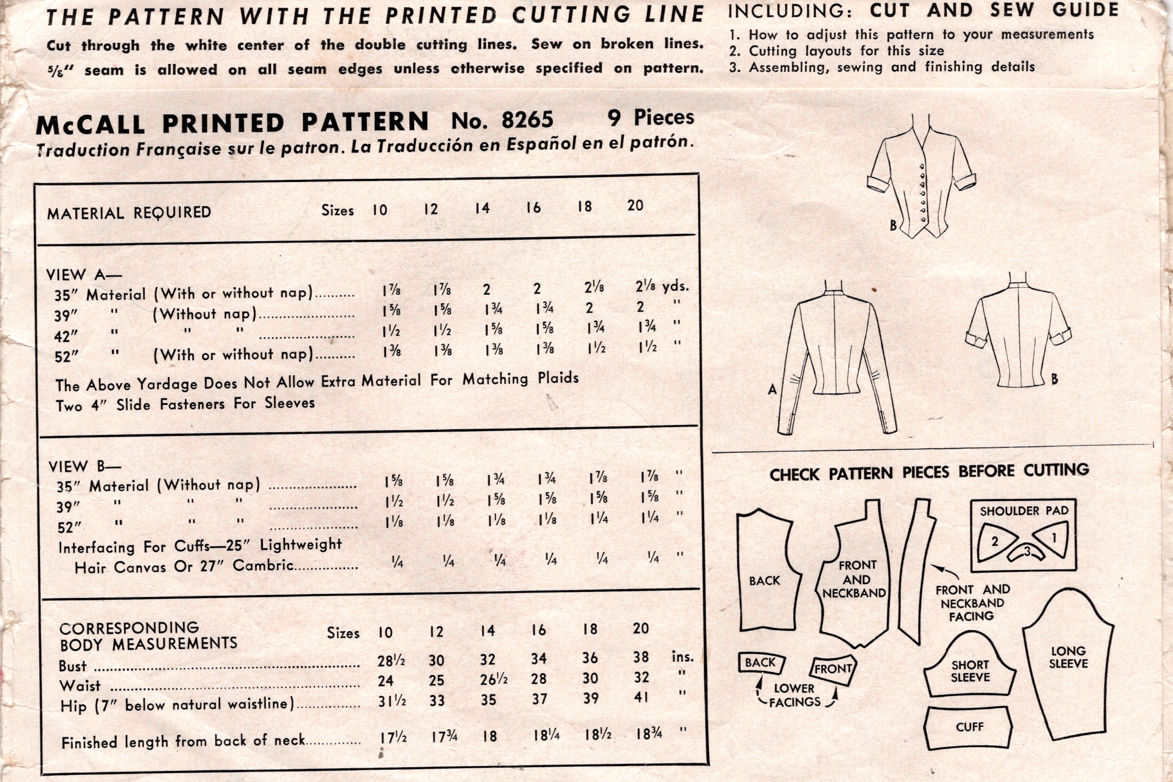 ~ A 2 page Instructions and Illustrations on ‘How to Adjust Your pattern to your Personal Measurement .