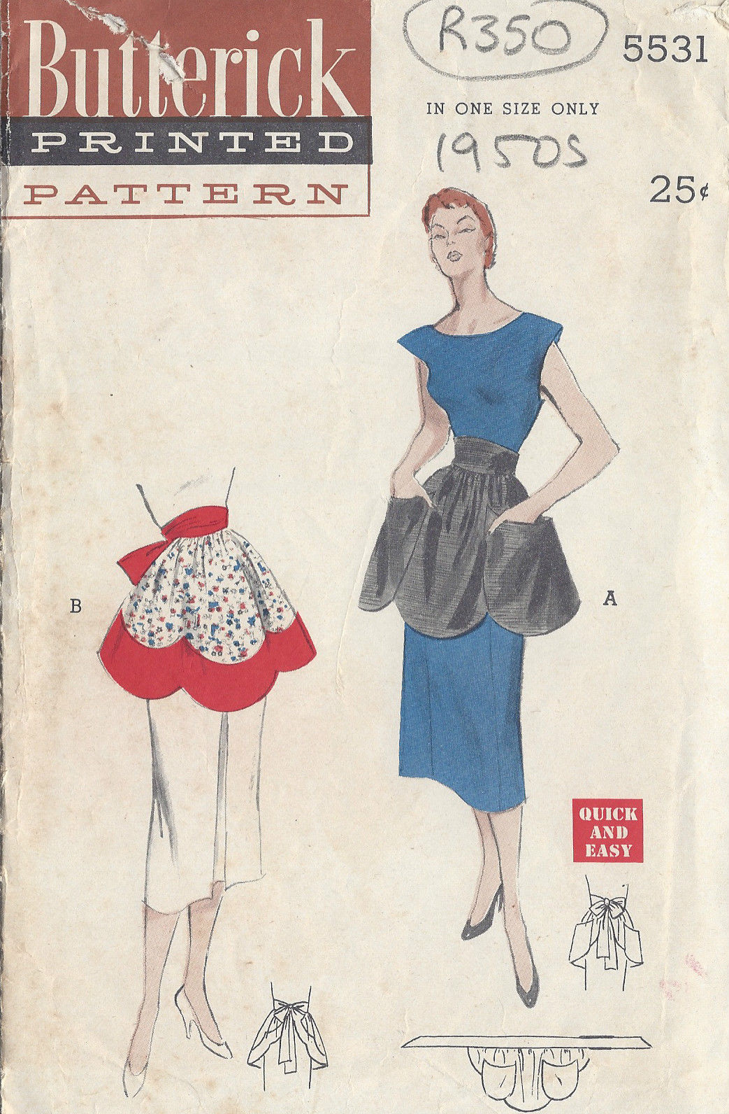 1950s Vintage Sewing Pattern APRON ONE SIZE (R350)