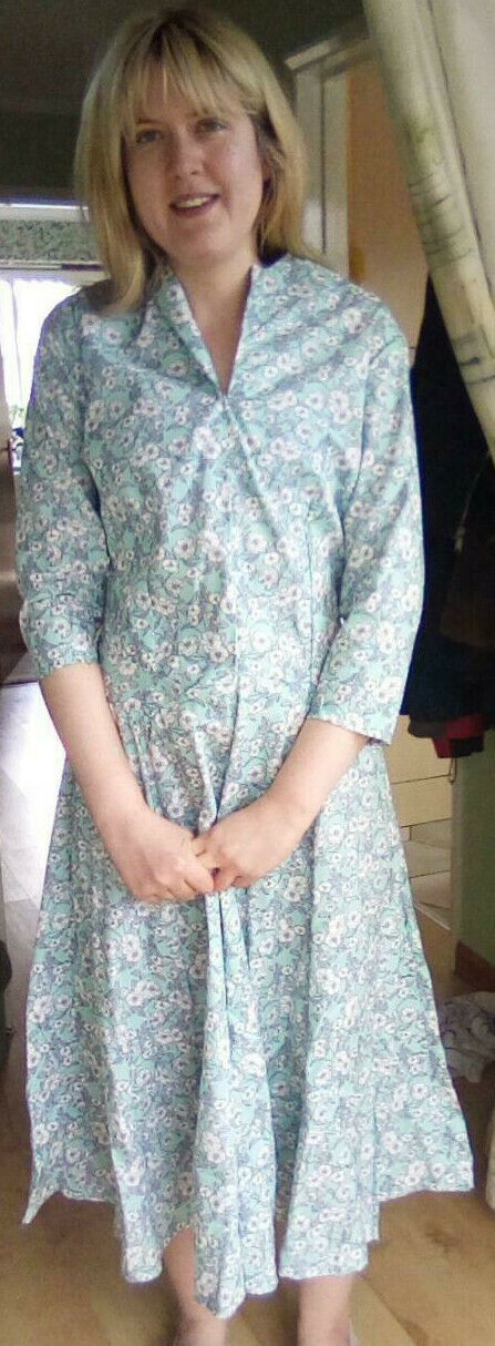 (One of my lovely regular customers Josie kindly submitted these photographs of this garment made by her from this pattern. ook 8 hours to complete,100% cotton poplin 5 meters fabric £44.95, one spool of Gurtermann sewing thread £1.99, 20 inch zipper £1.59, and half a meter of interfacing £2.00, Total cost £50.53)