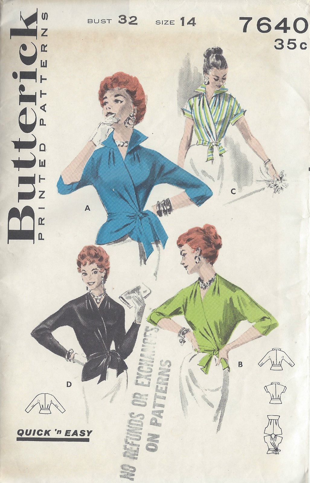 1950s Vintage Sewing Pattern B32 WRAP-OVER BLOUSE (1006)
