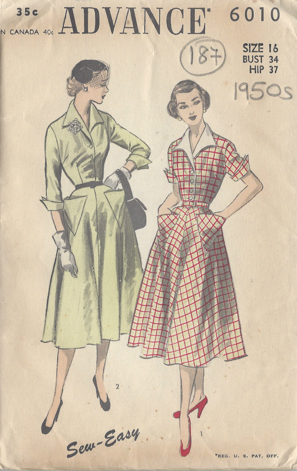 ~ Please Note: You are buying a ‘Professional Digitally Reproduced’ copy of this sewing pattern (copied from the original sewing pattern), produced in ‘Full Scale Pattern Pieces’ ready to cut with full instructions included. I have a vast collection of ‘Original Vintage Sewing Patterns’ ranging from the 1930s-to-1960s which are precious to me, so I decided to have copies professionally made to a very high standard by a reputable printing company. Therefore part of my collection of sewing patterns are reproduced to this quality high standard, on 60 gram white bond paper with black ink. This will ensure a much longer lasting effect and easier to be used again and again. Also included with this product is: a plastic bound ‘Booklet’ giving instructions and Illustrations on ‘How to Adjust Your pattern to your Personal Measurement’, ‘Personal Measurement Chart’, ‘Body Form Illustrations’, ‘Note Pages’, ‘Garment History Page’ and ‘Fabric Worksheet’; all to facilitate with your pattern.