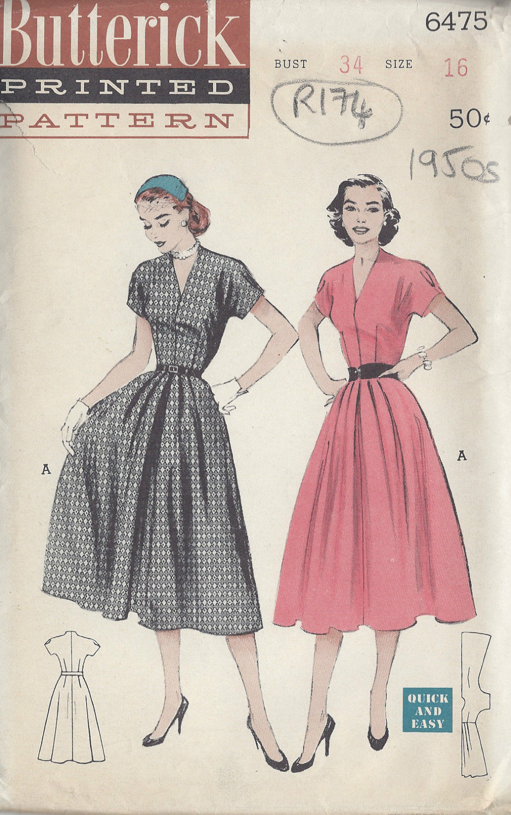 1950s Vintage Sewing Pattern B34" DRESS (R174)