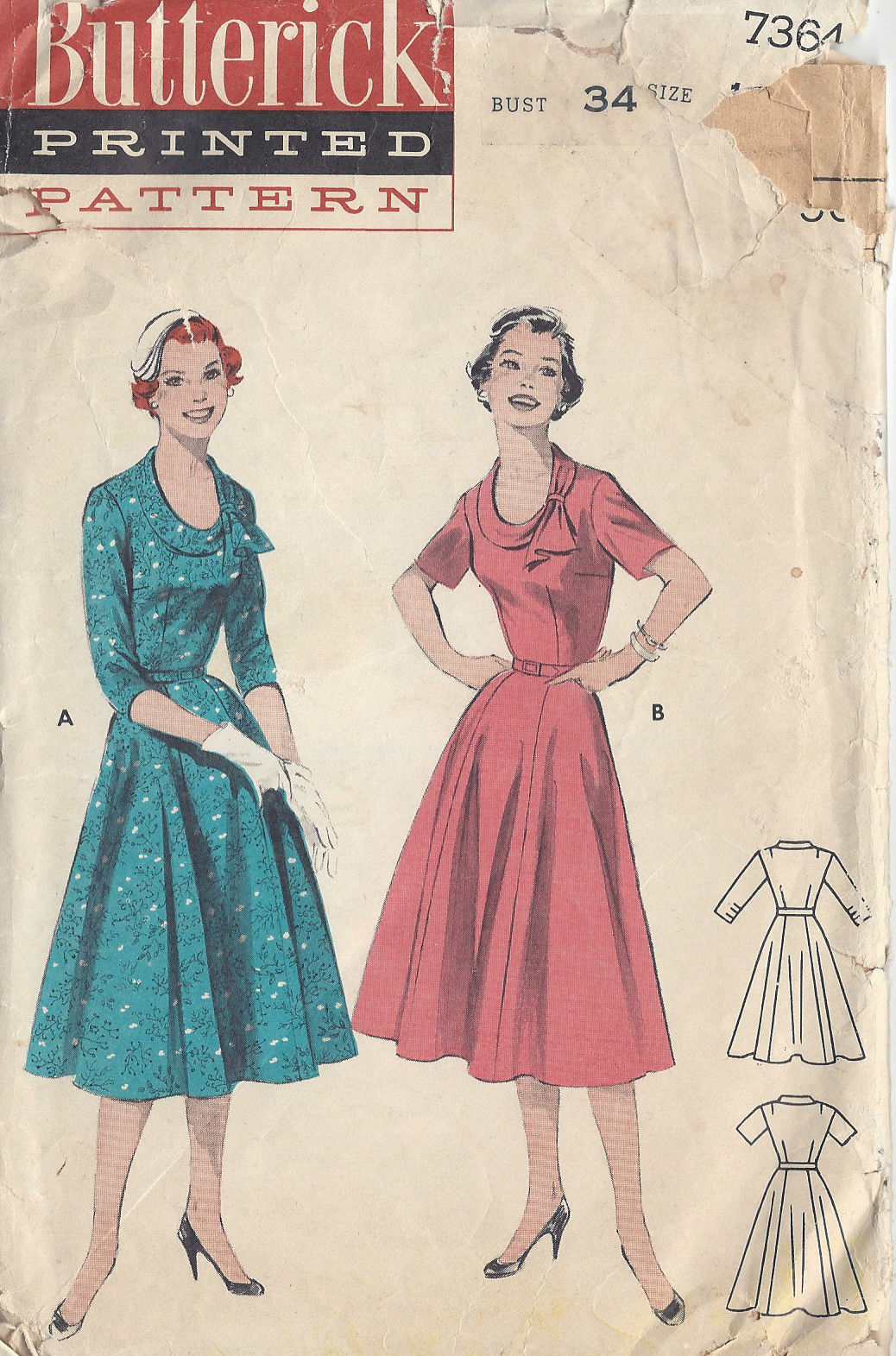 1950s Vintage Sewing Pattern B34" DRESS (R660)