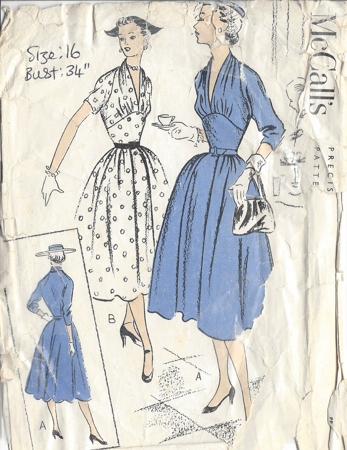 ~ Please Note: You are buying a ‘Professional Digitally Reproduced’ copy of this sewing pattern (copied from the original sewing pattern), produced in ‘Full Scale Pattern Pieces’ ready to cut with full instructions included. I have a vast collection of ‘Original Vintage Sewing Patterns’ ranging from the 1930s-to-1970s which are precious to me, so I decided to have copies professionally made to a very high standard by a reputable printing company. Therefore part of my collection of sewing patterns are reproduced to this quality high standard, on 50 gram paper with black ink. This will ensure a much longer lasting effect and easier to be used again and again. Also included with this product is: a plastic bound ‘Booklet’ giving instructions and Illustrations on ‘How to Adjust Your pattern to your Personal Measurement’, ‘Personal Measurement Chart’, ‘Body Form Illustrations’, ‘Note Pages’, ‘Garment History Page’ and ‘Fabric Worksheet’; all to facilitate with your pattern.
