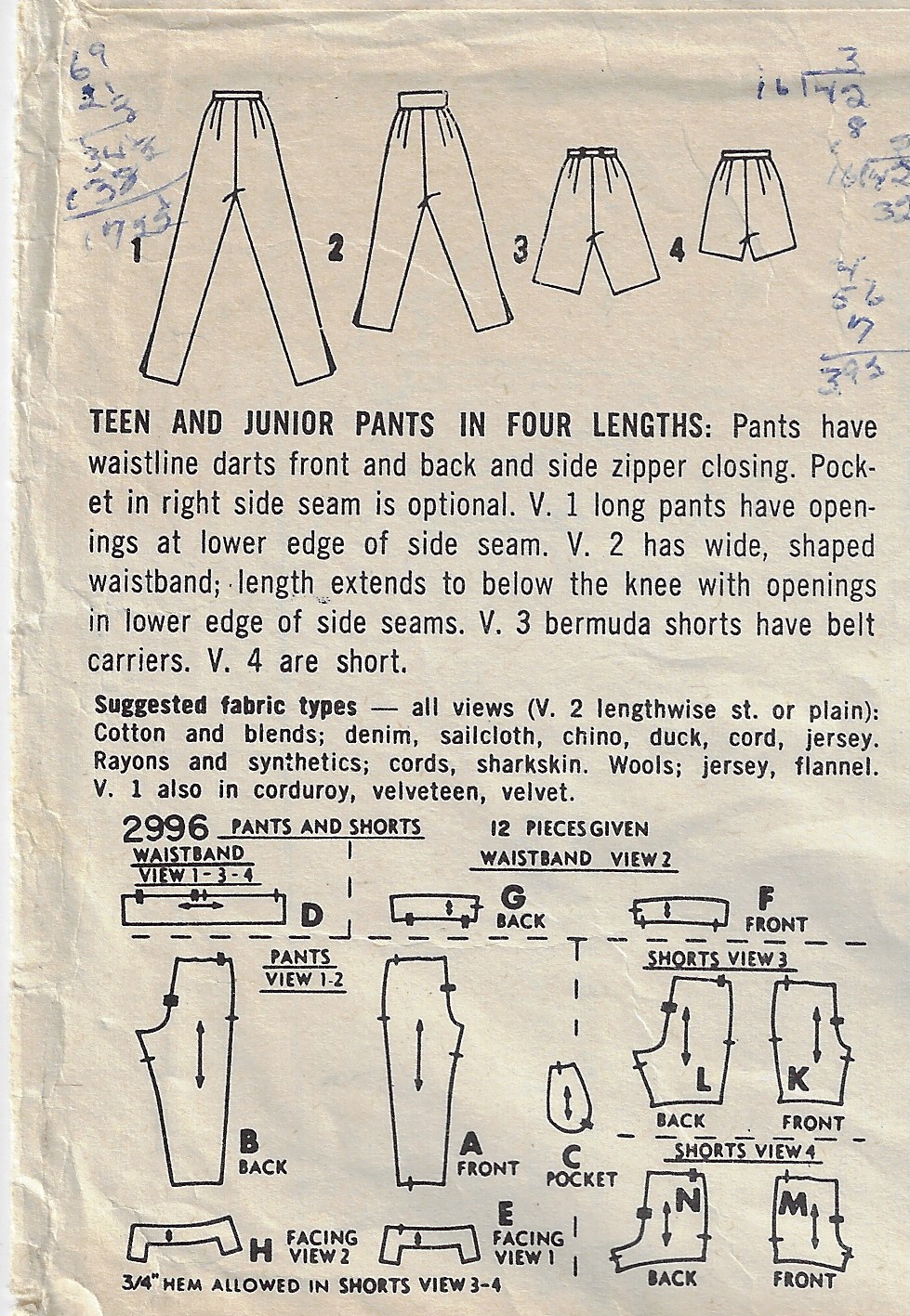 ~ Details: PANTS & SHORTS in four lengths