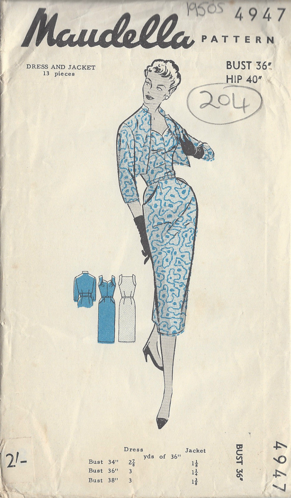 1950s Vintage Sewing Pattern B36" DRESS & JACKET (204)