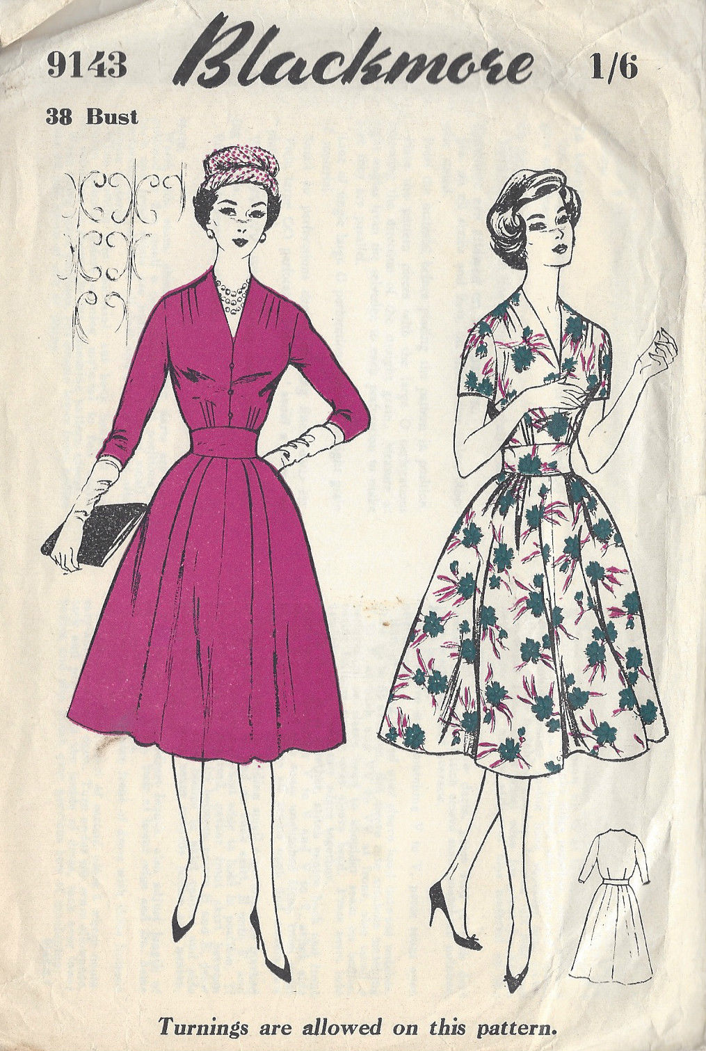 1950s Vintage Sewing Pattern B38 DRESS (R752)
