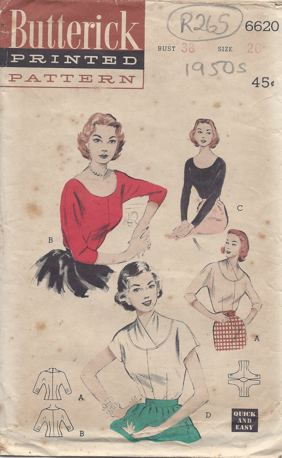 1950s Vintage Sewing Pattern BLOUSE B38" (R265)