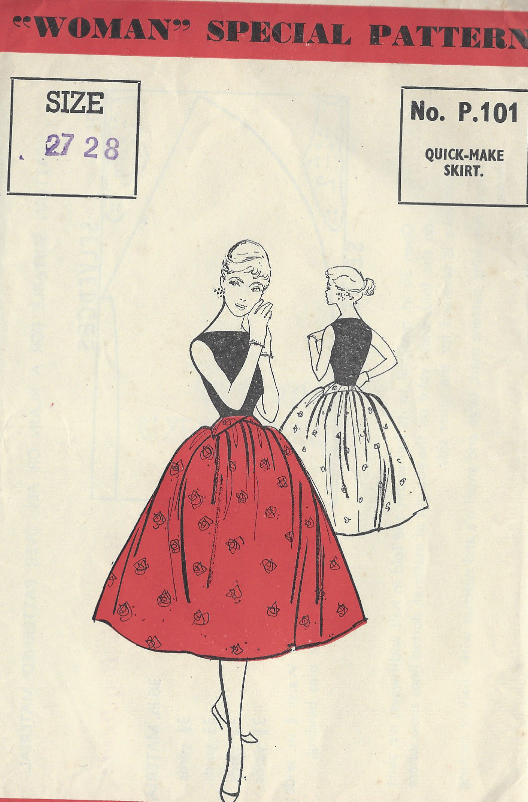 1950s Vintage Sewing Pattern SKIRT W27-28 (R935)