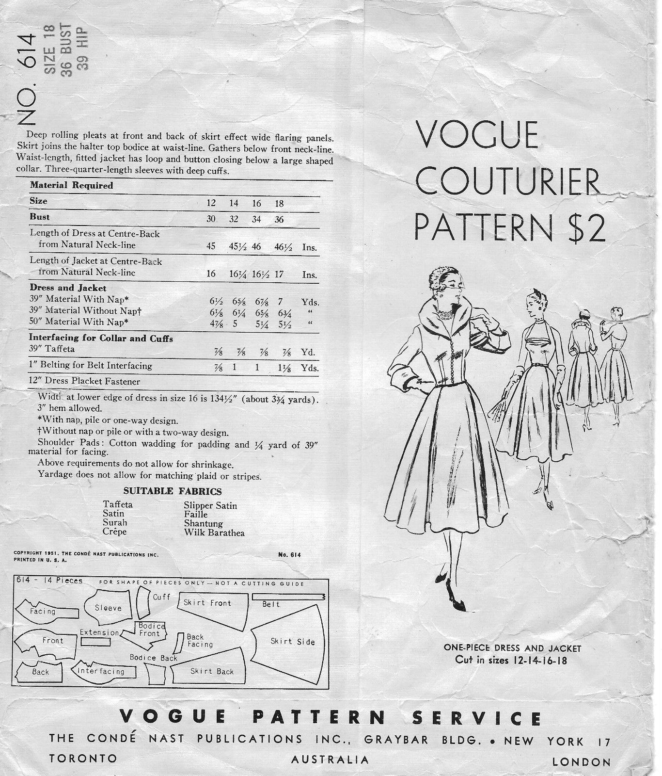 1951 Vintage VOGUE Sewing Pattern B36 JACKET & DRESS (1407R)
