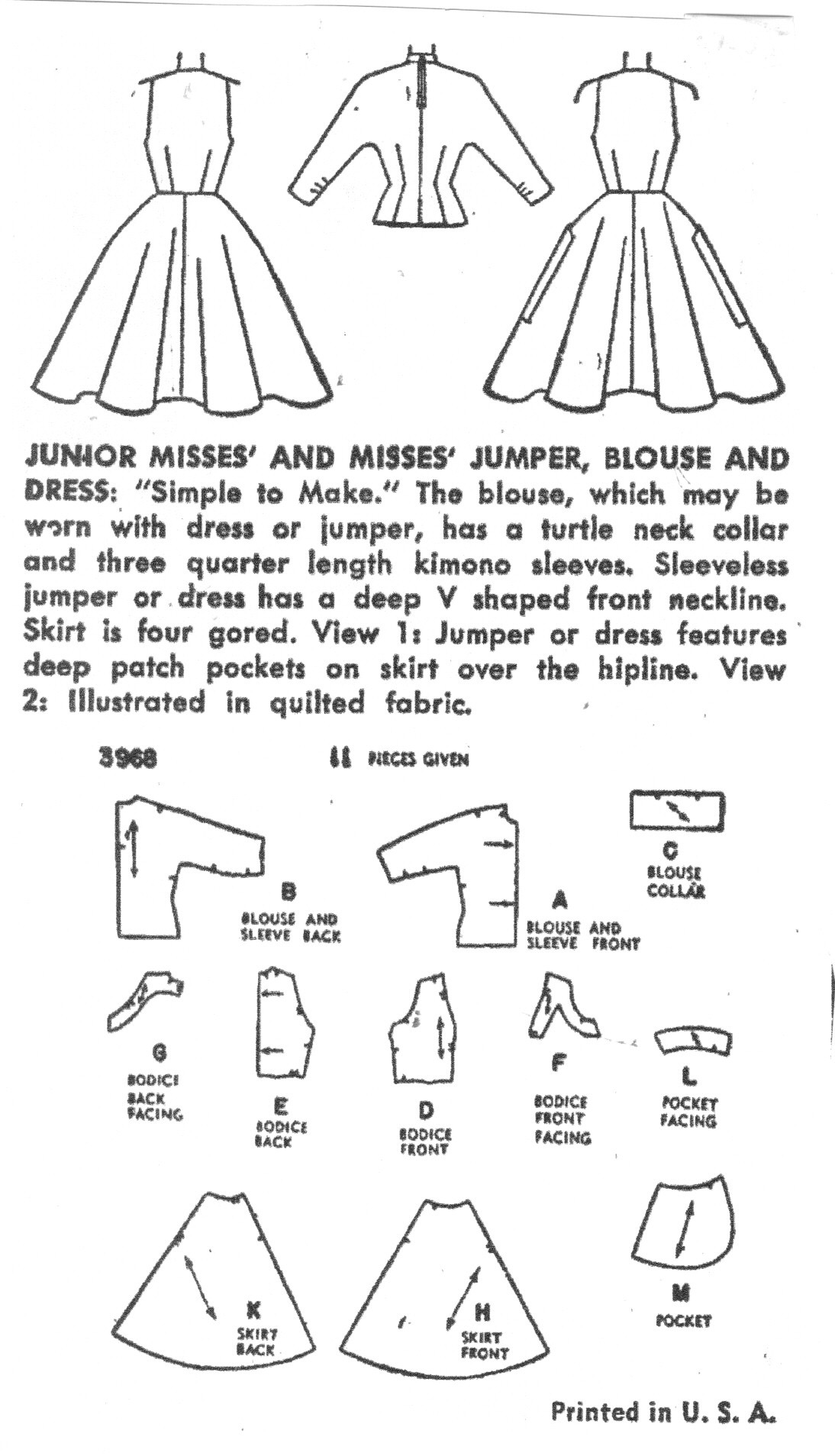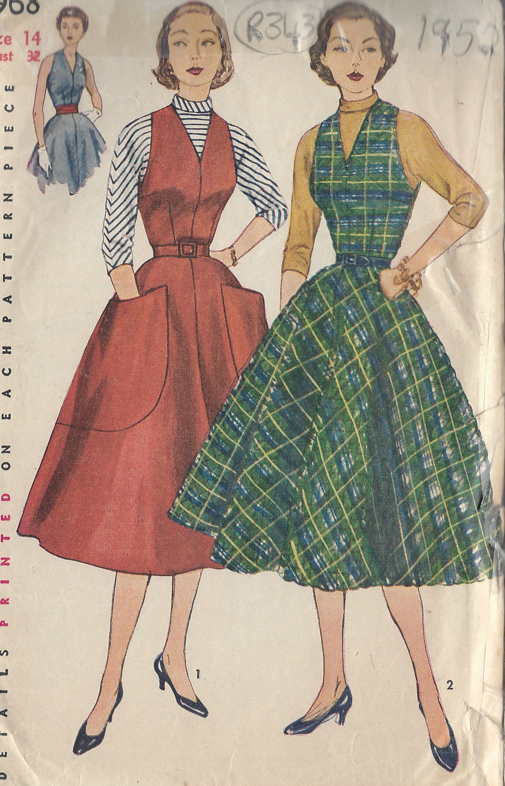 1952 Vintage Sewing Pattern B32in DRESS, JUMPER & BLOUSE (R343) By Simplicity 3968