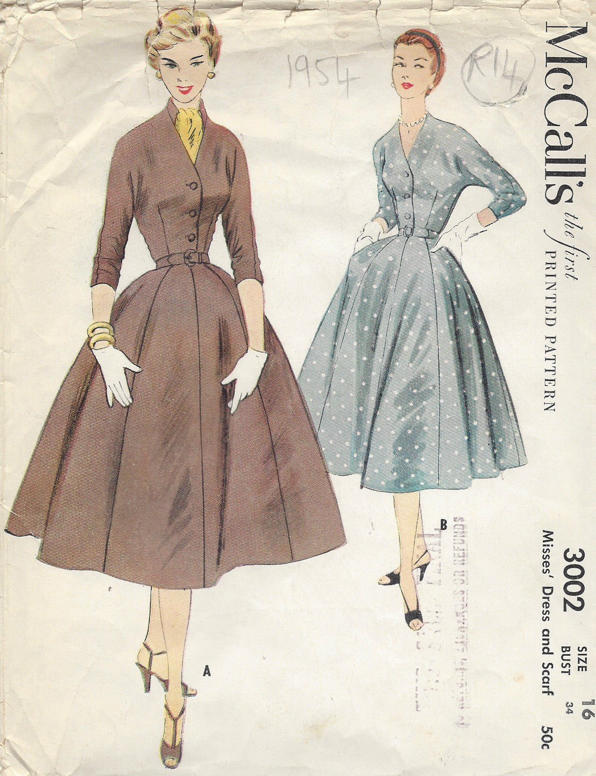 1954 Vintage Sewing Pattern B34" DRESS (R14)