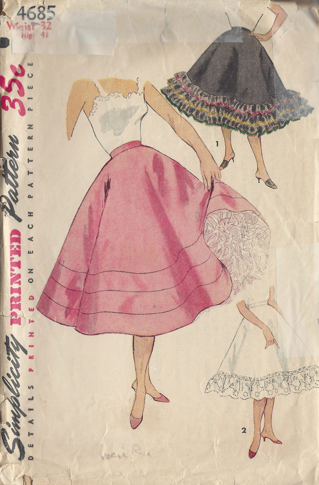 1954 Vintage Sewing Pattern W32 FLARED PETTICOAT (R934)