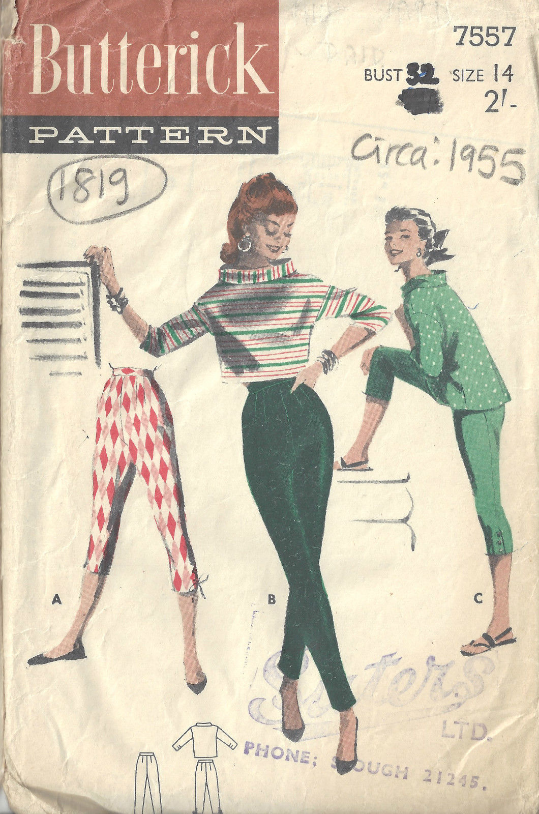 1955 Vintage Sewing Pattern B32 W26 PANTS & BOXY TOPS (1819)