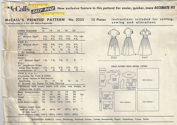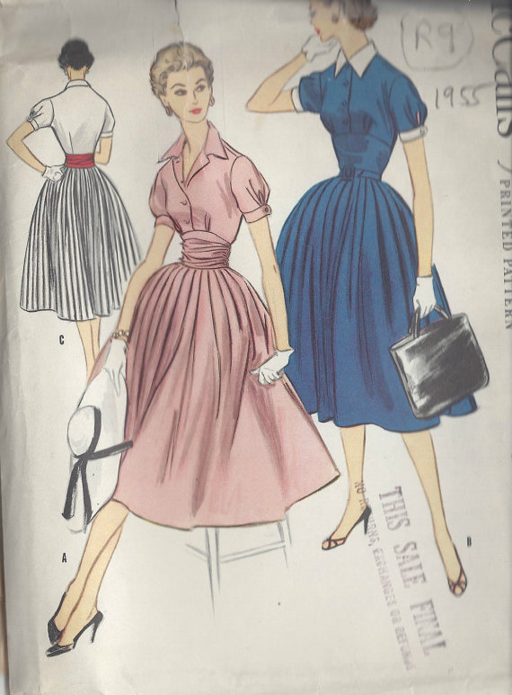 1955 Vintage Sewing Pattern B34″ DRESS (R9) By McCall’s 3253