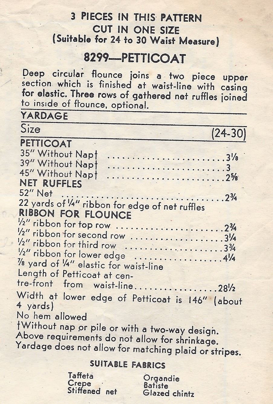 ~ Details: SKIRT PETTICOAT with ELASTICATED WAISTLINE by VOGUE (Three rows of net ruffles joined to inside flounce, optional)