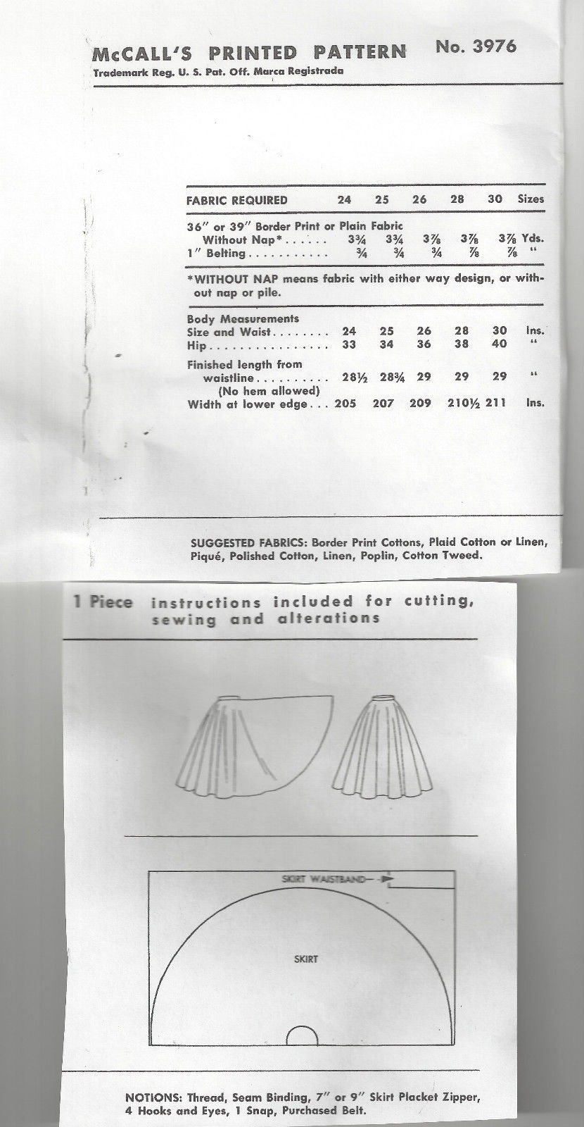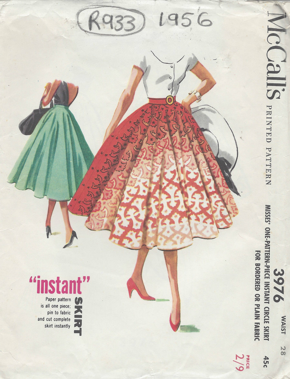 1956 Vintage Sewing Pattern CIRCLE SKIRT W28 (R933) By McCall’s 3976