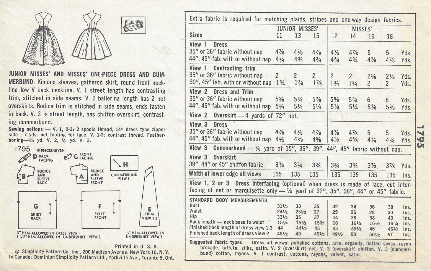 ~ Please Note: You are buying a ‘Professional Digitally Reproduced’ copy of this sewing pattern (copied from the original sewing pattern), produced in ‘Full Scale Pattern Pieces’ ready to cut with full instructions included. I have a vast collection of ‘Original Vintage Sewing Patterns’ ranging from the 1930s-to-1980s which are precious to me, so I decided to have copies professionally made to a very high standard by a reputable printing company. Therefore part of my collection of sewing patterns are reproduced to this quality high standard, on 50 gram paper with black ink. This will ensure a much longer lasting effect and easier to be used again and again. Also included with this product is: a plastic bound ‘Booklet’ giving instructions and Illustrations on ‘How to Adjust Your pattern to your Personal Measurement’, ‘Personal Measurement Chart’, ‘Body Form Illustrations’, ‘Note Pages’, ‘Garment History Page’ and ‘Fabric Worksheet’; all to facilitate with your pattern.