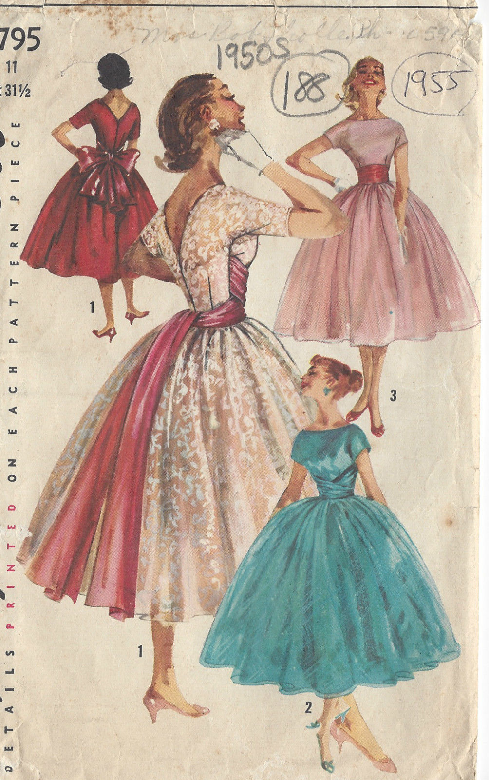 1956 Vintage Sewing Pattern DRESS B31 1/2" (188)