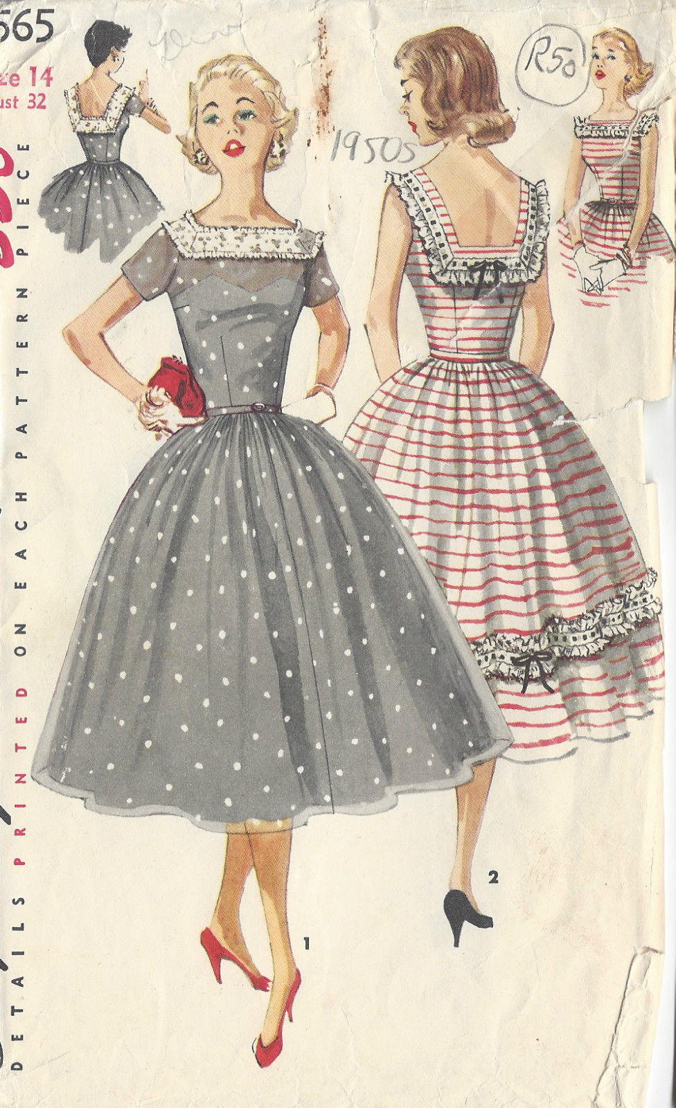 1956 Vintage Sewing Pattern DRESS B32" (R50)