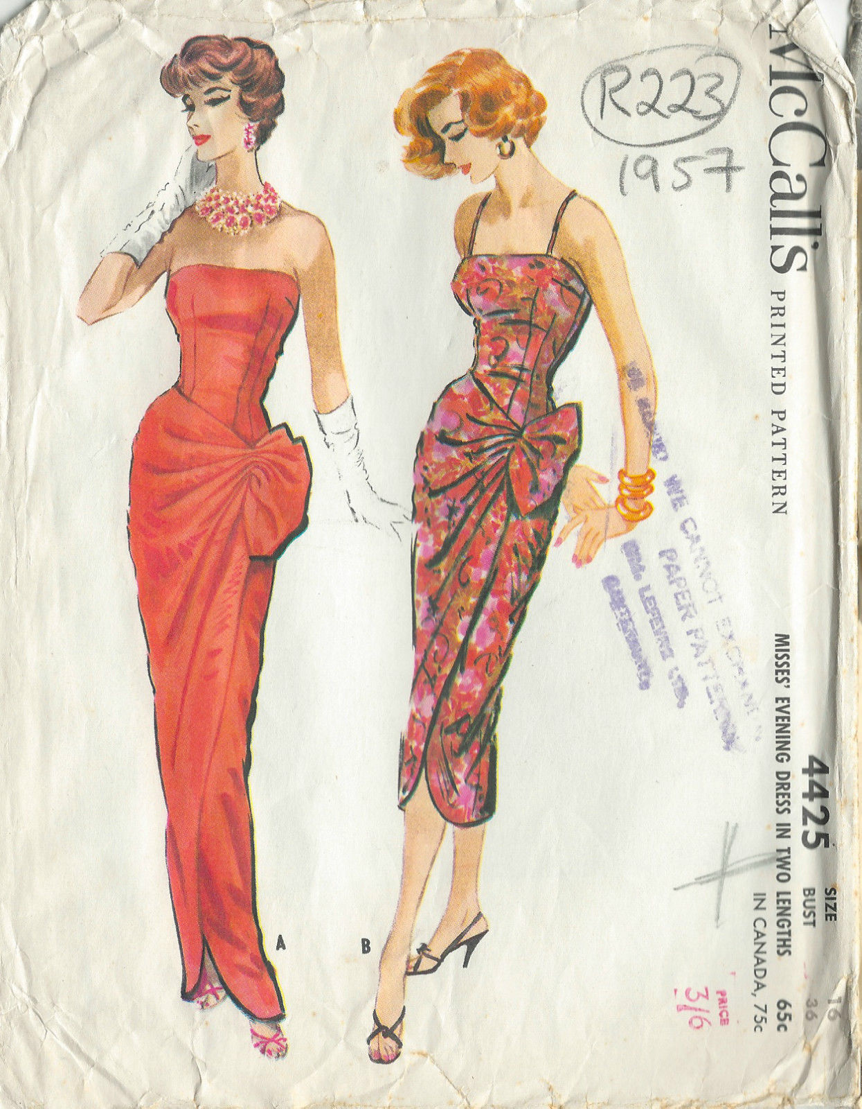 1957 Vintage Sewing Pattern DRESS B36" (R223)