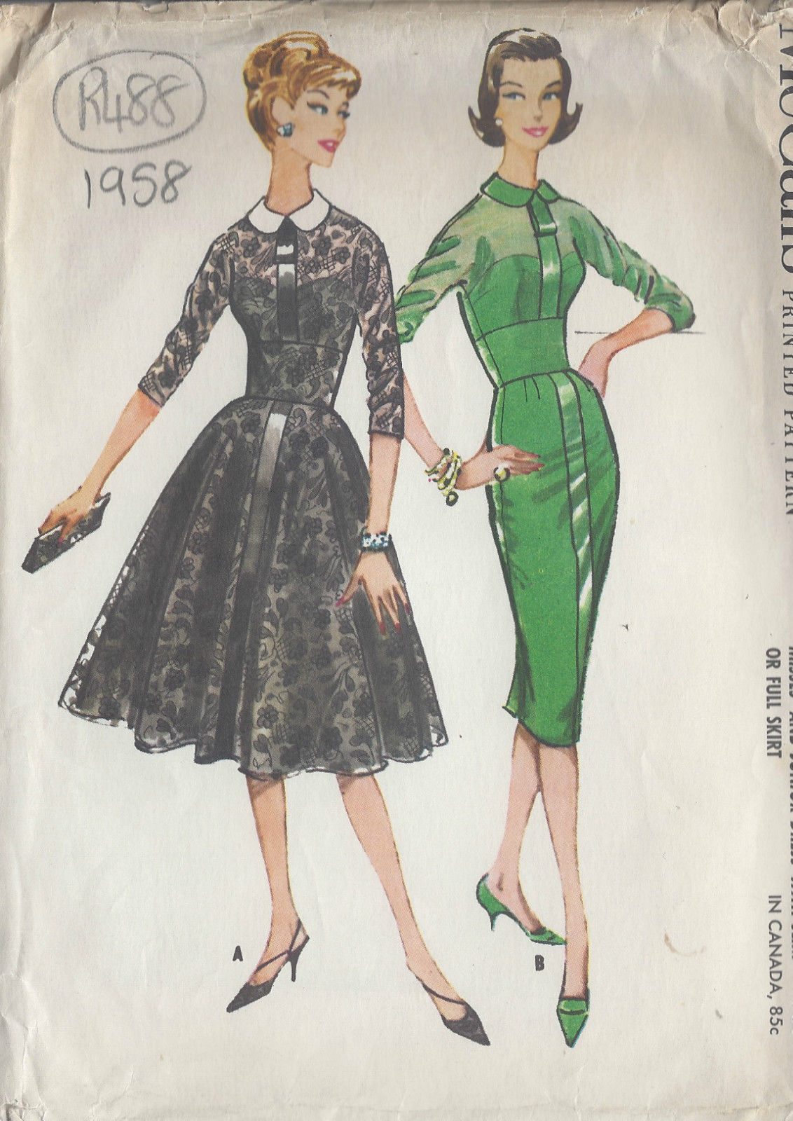 1958 Vintage Sewing Pattern DRESS B38" (R488)