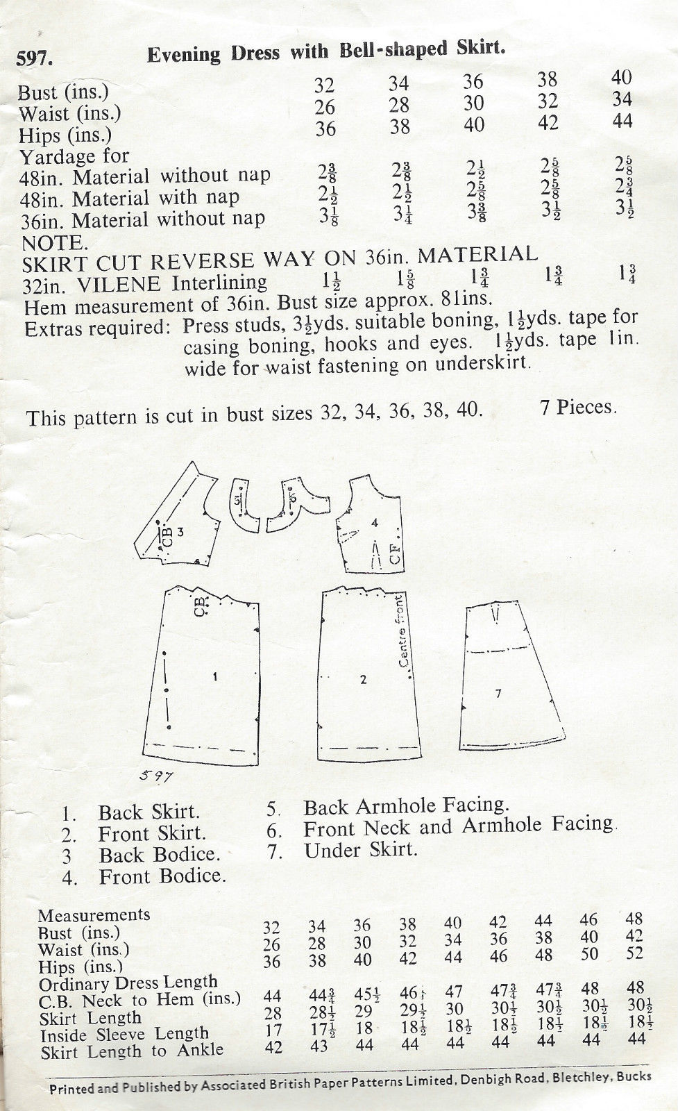 ~ Details: Described as EVENING DRESS with BELL SHAPED SKIRT – though could easily be worn as a summer day dress.
