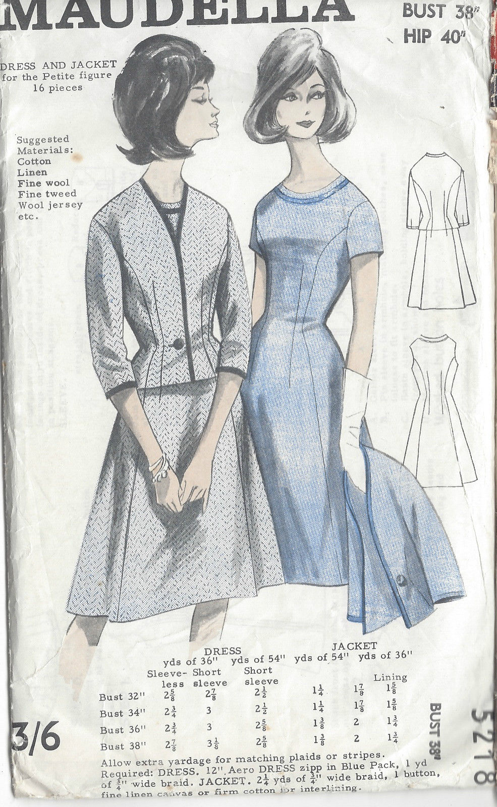1960s Vintage Sewing Pattern B38in DRESS & JACKET (R664)