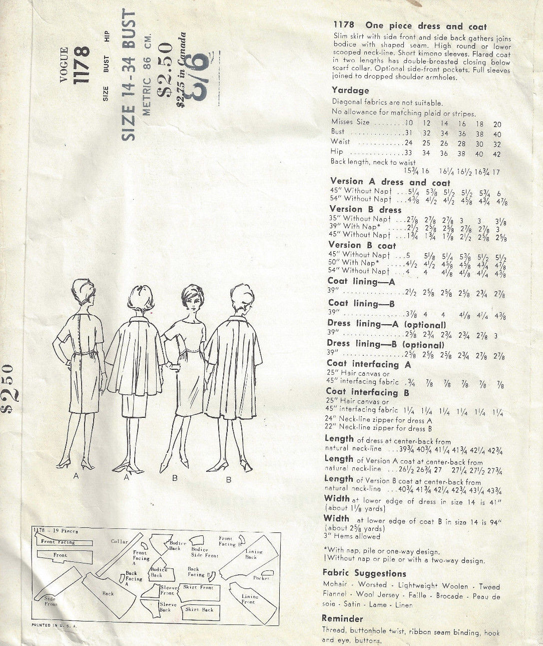 ~ Details:   ONE-PIECE DRESS and TWO STYLE VARIATION COAT – A VOGUE, Designed by SIMONETTA of ITALY’