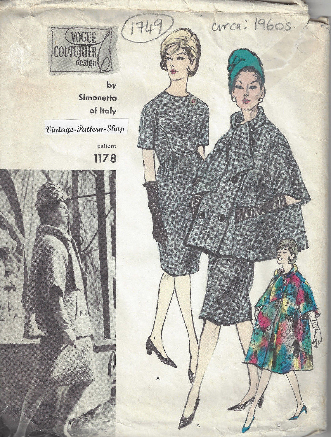 1960s Vintage VOGUE Sewing Pattern B34″ DRESS & COAT (1749) By SIMONETTA of ITALY