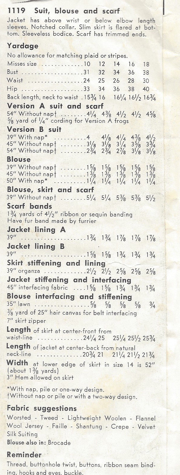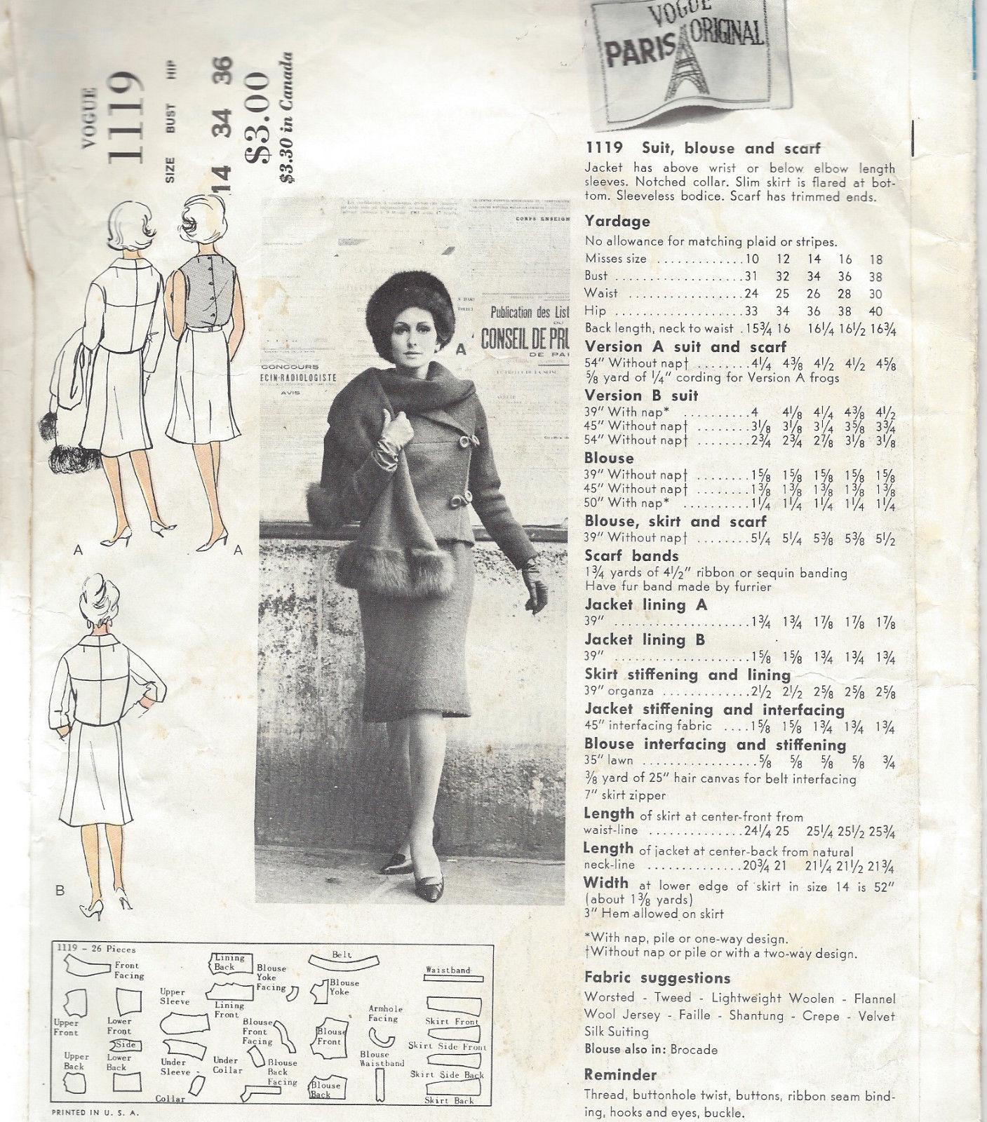 ~ Details: SUIT – JACKET SKIRT BLOUSE and SCARF. A VOGUE Paris Original, Designed by Christian Dior (A Classic!)