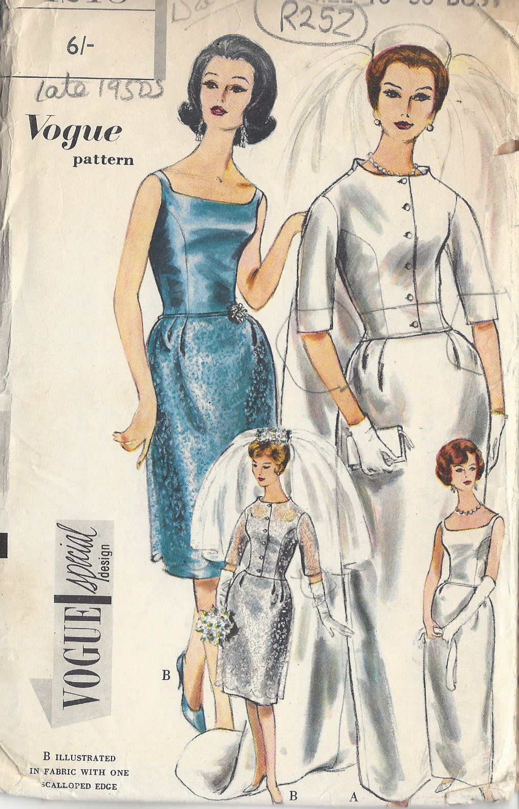1960s Vintage VOGUE Sewing Pattern B36in WEDDING DRESS, TRAIN & JACKET (R252)